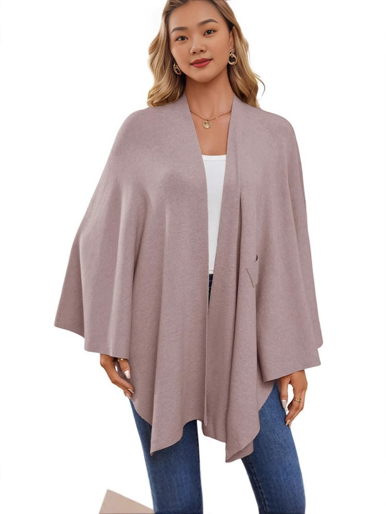 2024亚马逊爆款独立站_女士优雅一片式纯色柔软披肩外套斗篷上衣