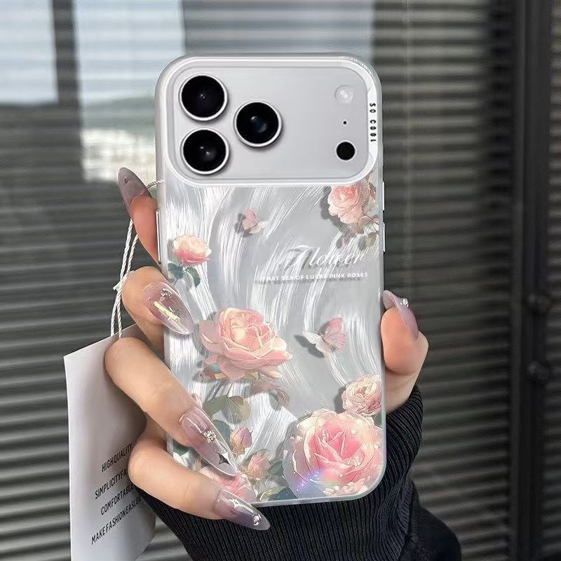 蝴蝶玫瑰适用苹果17手机壳新款17Air 彩银壳17Promax/16/15轻奢爆