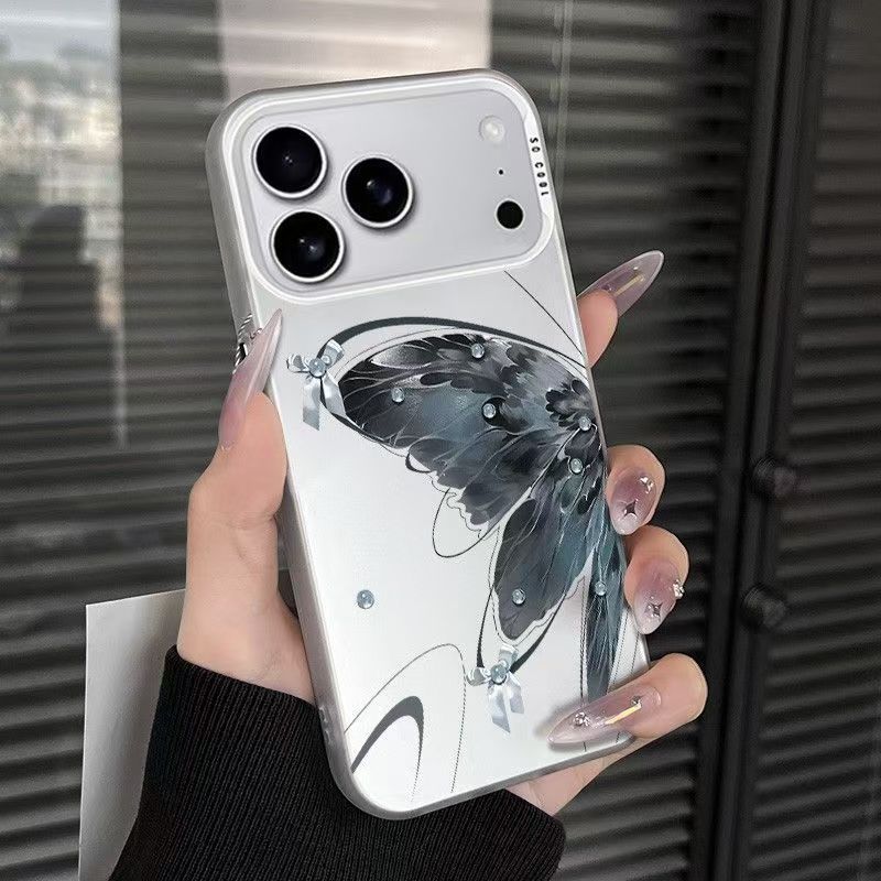 玄青蝴蝶适用苹果17手机壳新款iPhone16Air彩银壳15/14Promax磨砂