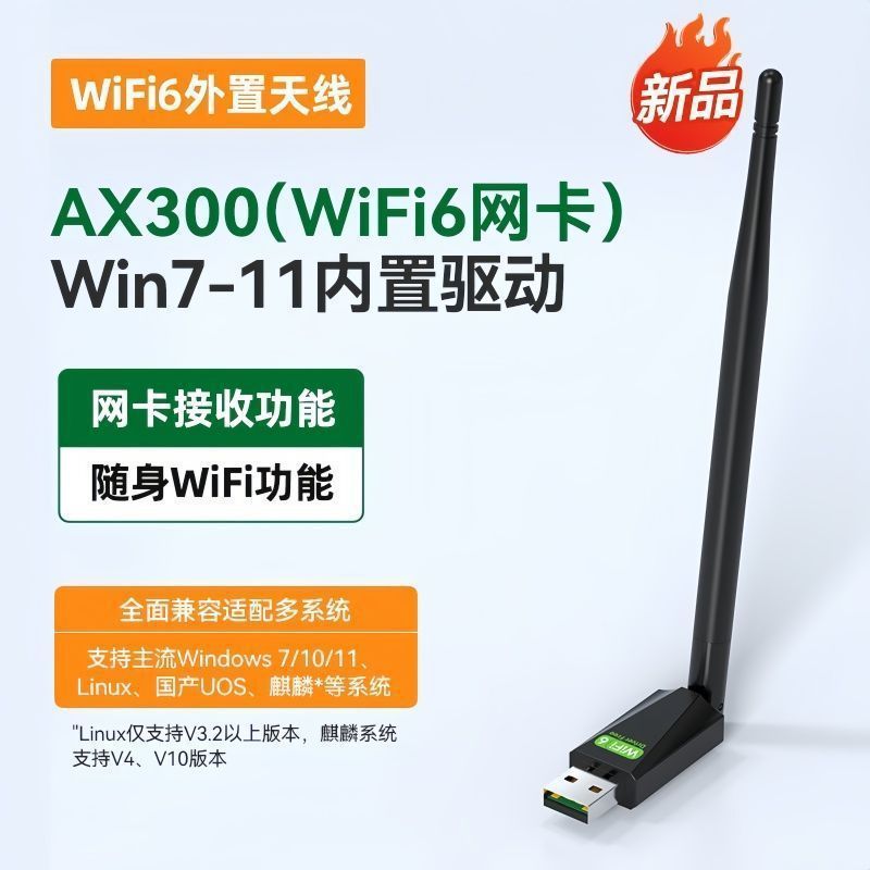 无线网卡WiFi6免驱动USB台式机笔记本电脑随身wifi发射器接收器