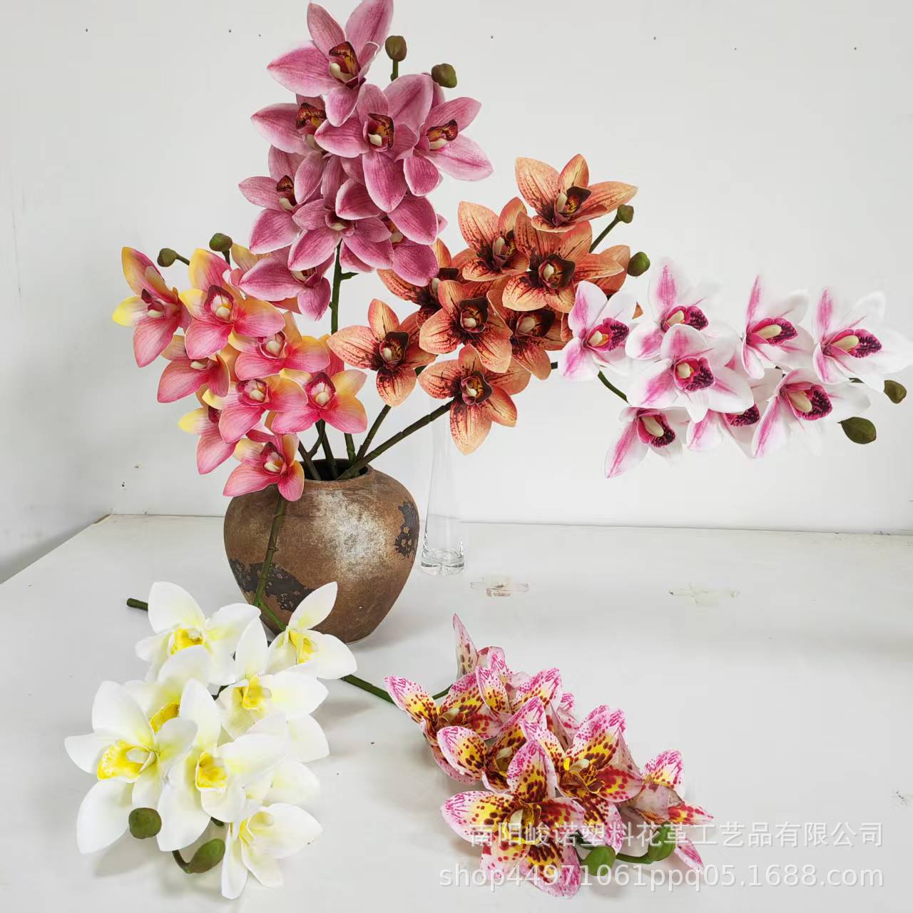 北欧新款单支3D9头东亚兰仿真蕙兰假花落地花单枝大惠兰仿真兰花
