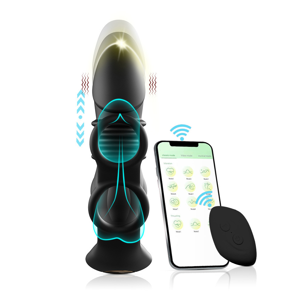 APP男用伸缩前列腺肛塞 g点双环震动棒亚马逊无线遥控后庭按摩器