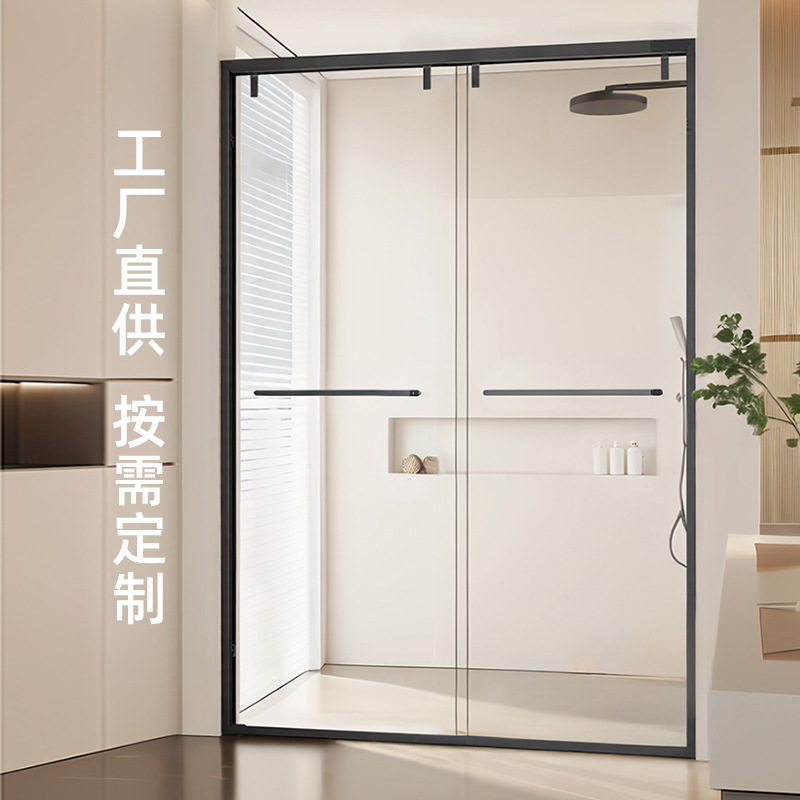 不锈钢一字型淋浴房干湿分离玻璃隔断卫生间浴室推拉沐浴门定 制
