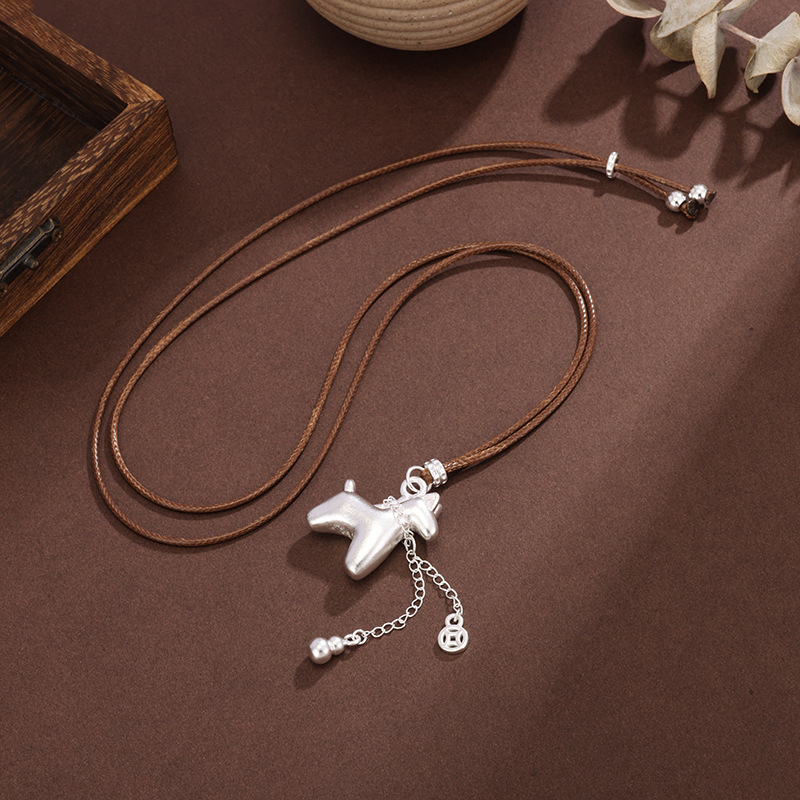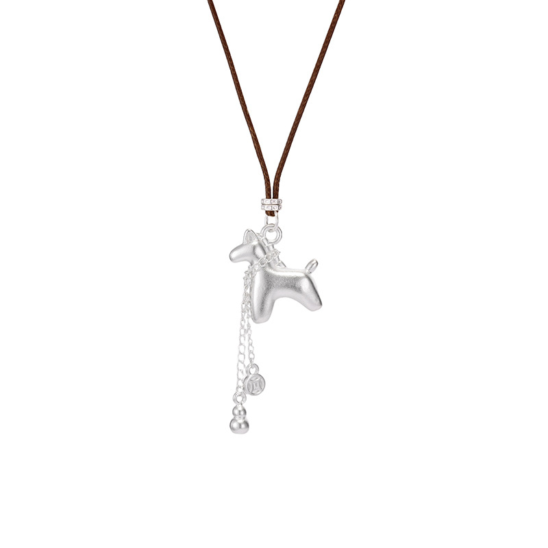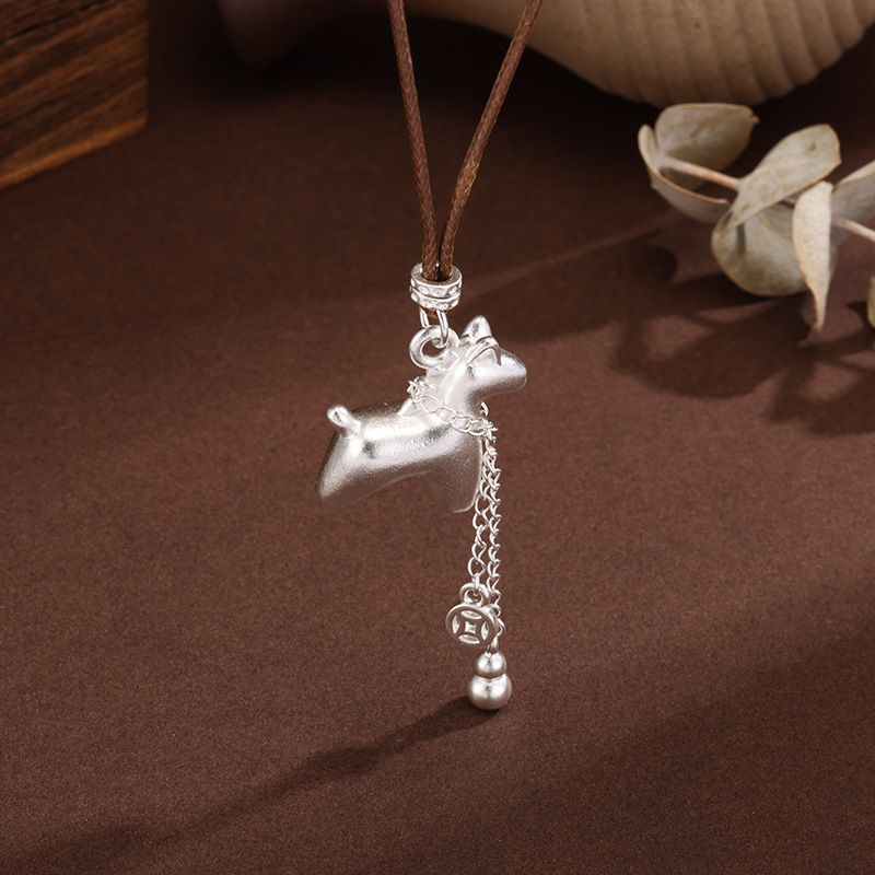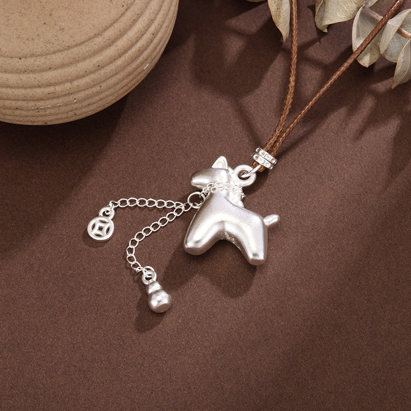 白铜镀银吊坠小马驹吊坠马上有钱银首饰项链编绳可调节马年送礼