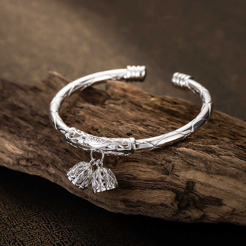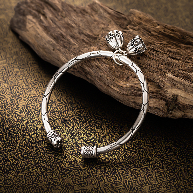 复古传承古银莲蓬开口手镯简约设计感新款情人节送女友之生日礼物