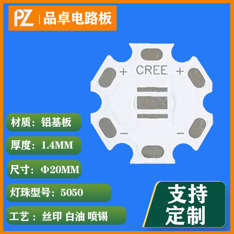 T6LED铝基板 1W梅花六角铝基板 pcb线路板 电路板XML-5050led灯