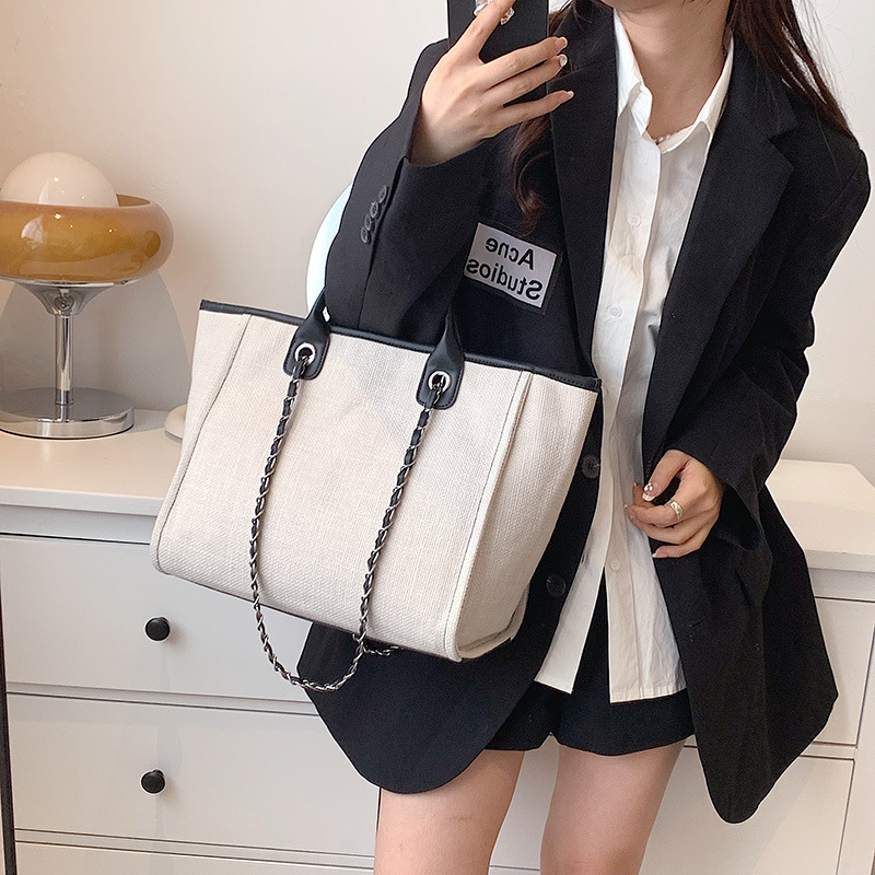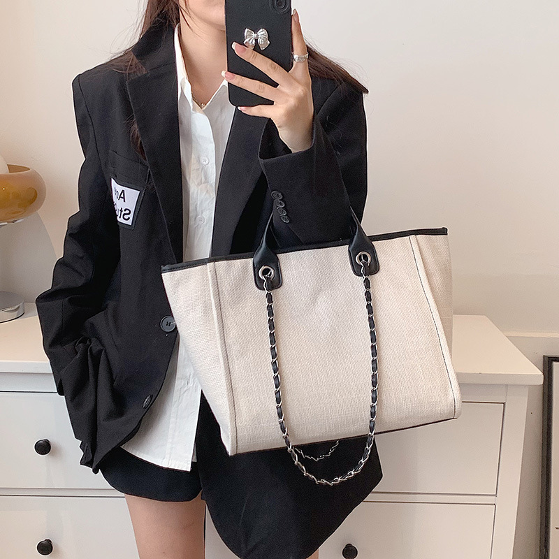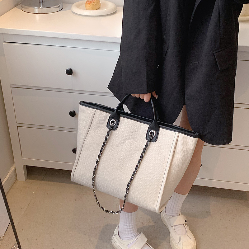 批发韩版女包2021新款大容量潮包撞色链条托特包 单肩包网红手提