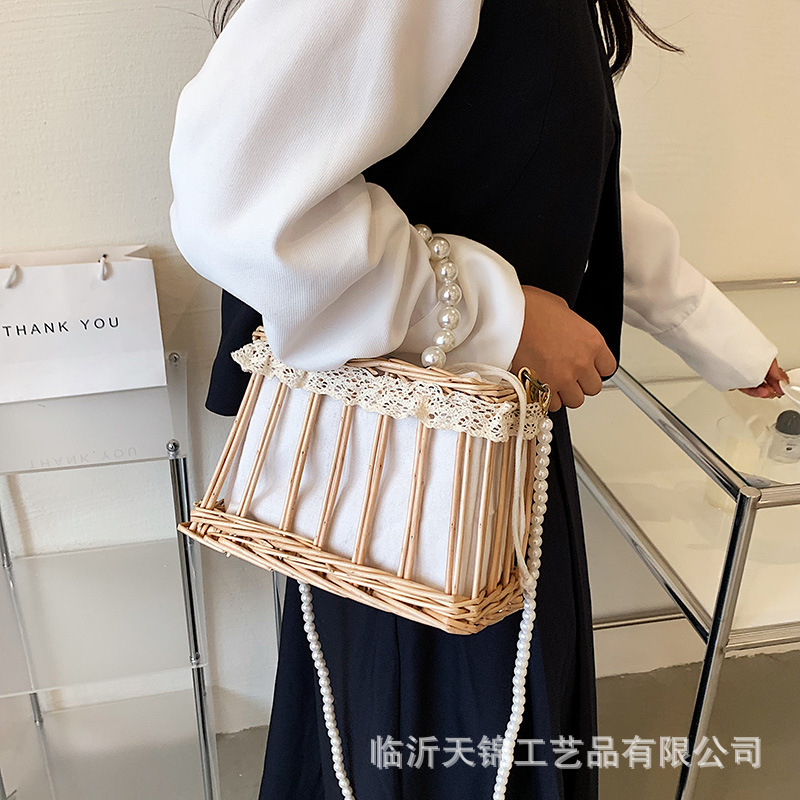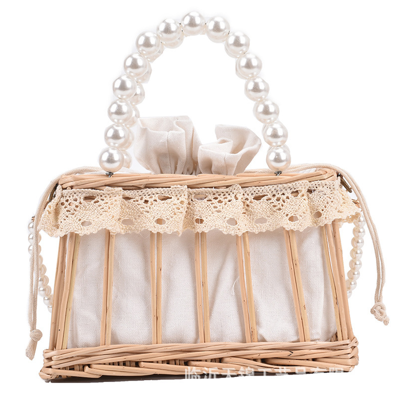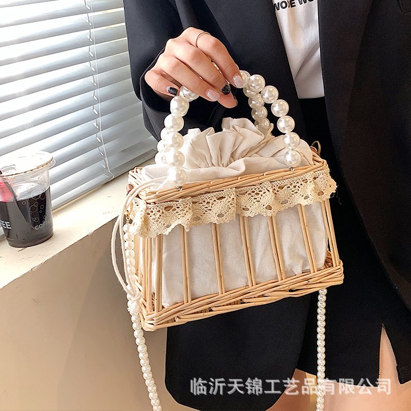 珍珠包包女新款编织包 网红手提包夏季沙滩包 草编包伴手礼竹编包