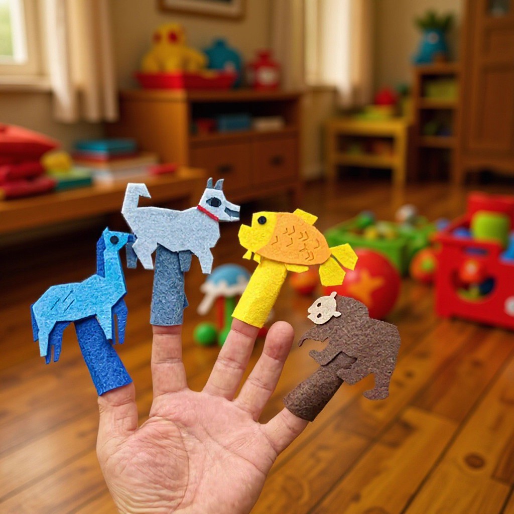 跨境无纺布手指套加厚不织布毛毡指偶动物卡通手工DIY装饰材料包