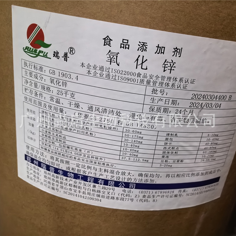 供应氧化锌 氧化镁食品级矿物质微量锌元素郑州瑞普氧化锌现货