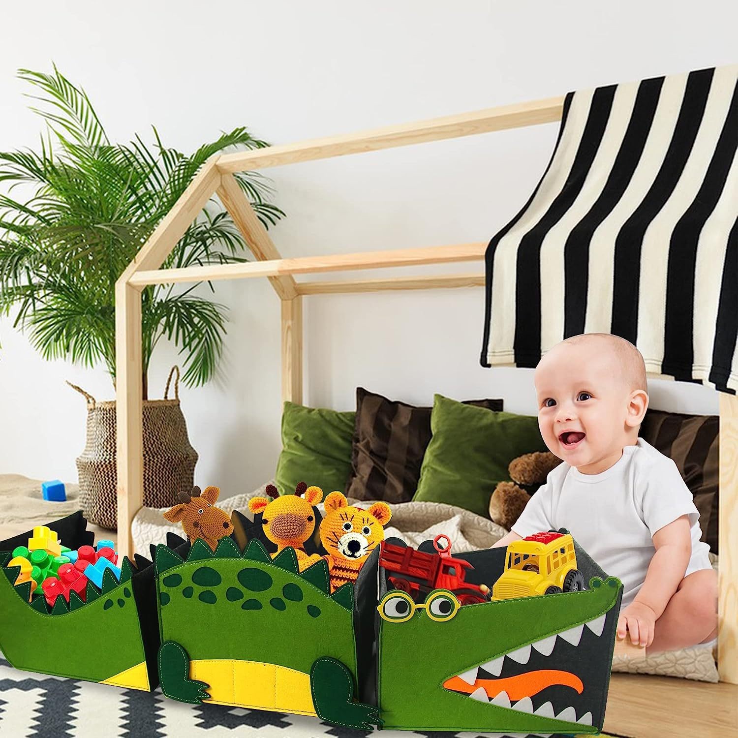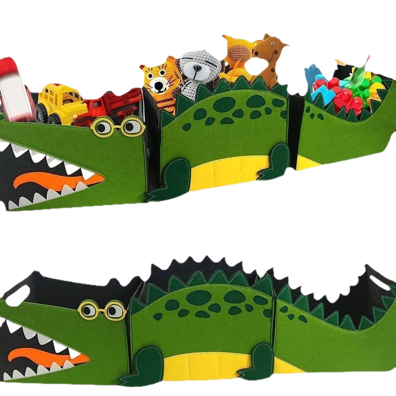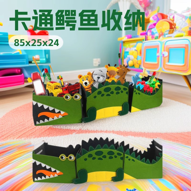 羊毛毡不织布鳄鱼收纳筐手工DIY立体拼图储物盒早教益智儿童玩具