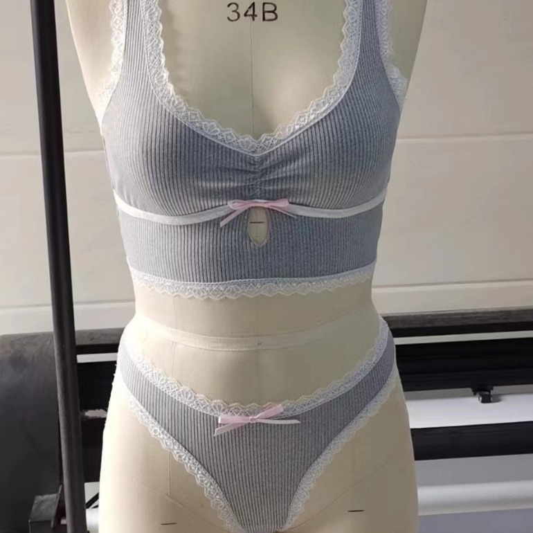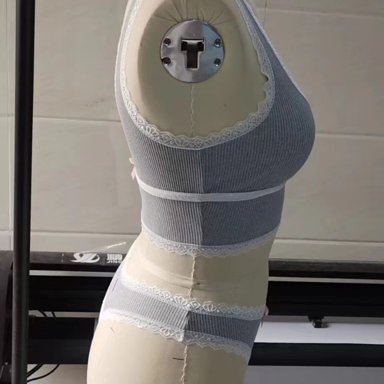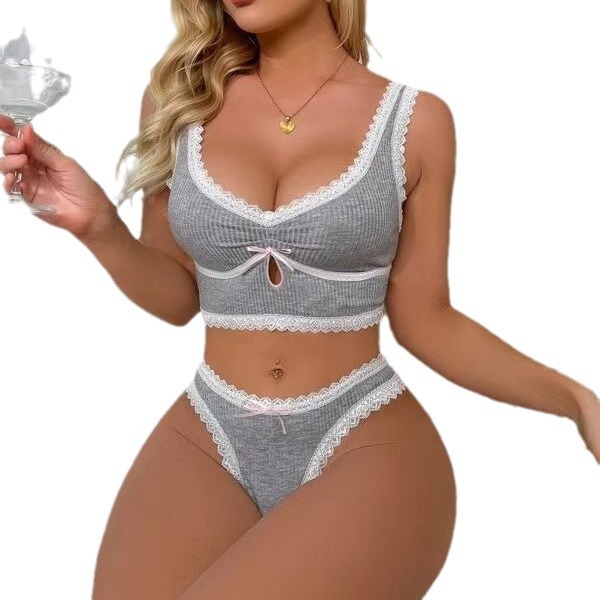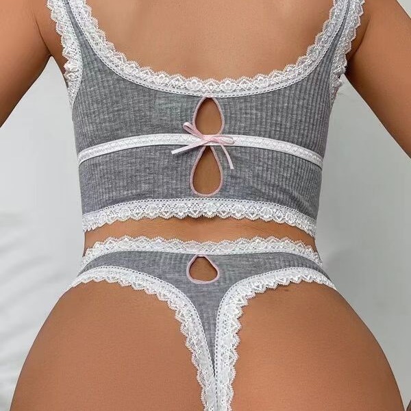 欧美INS2023款蕾丝无袖露脐性感套装情趣内衣蝴蝶结俏皮趣味
