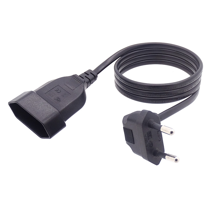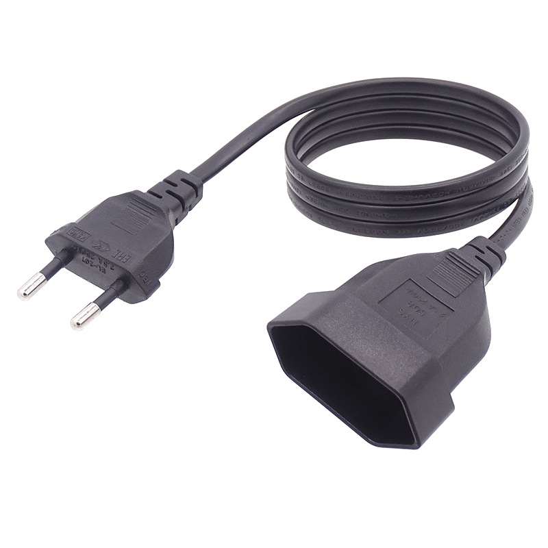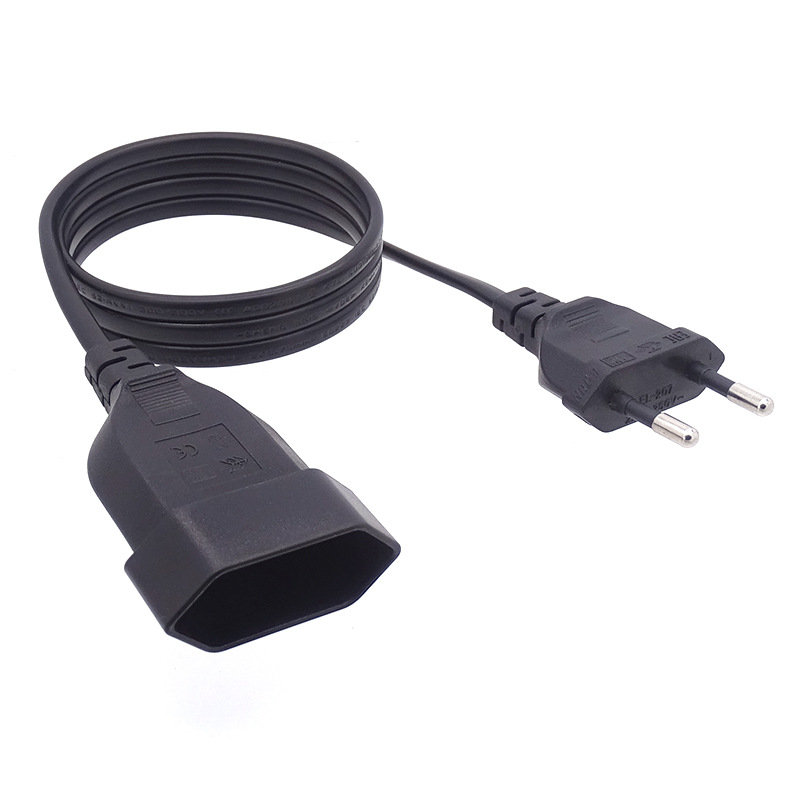 欧规电源线 弯头二插对插延长线 纯铜芯欧标二圆插对欧规二插母头