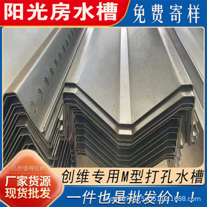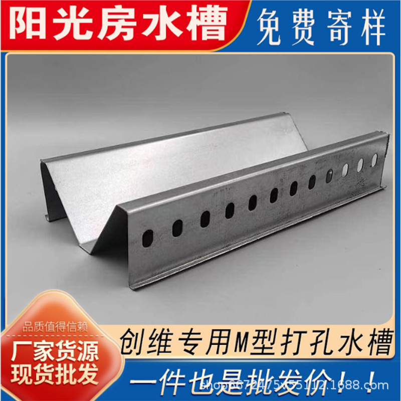 光伏m型水槽锌铝镁伏特佳侧打孔bipv阳光房w型横向防水支架导水槽