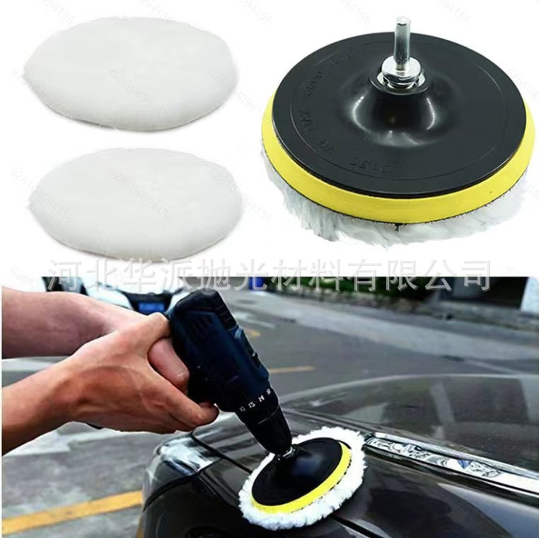 跨境6寸汽车美容抛光盘羊毛轮打蜡清洁羊毛球海绵自粘盘抛光5件套