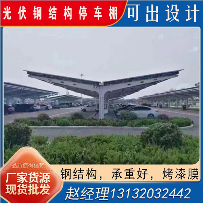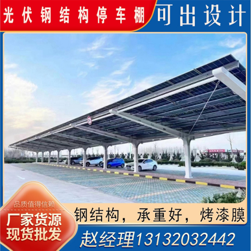 光伏车棚新能源环保太阳能发电景观遮阳烤漆钢结构可出设计车棚
