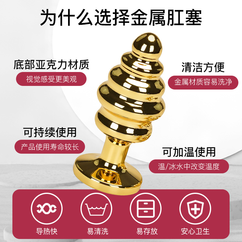 金属情趣肛塞拉珠螺纹后庭肛塞玩具自慰器成人性用品外长穿戴玩具