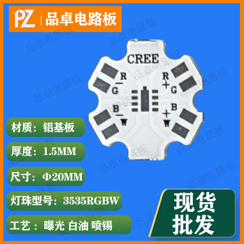 现货供应1.6MM全彩RGBW8脚3535六角铝基板20mm科锐Cree梅花板XPE