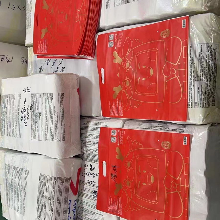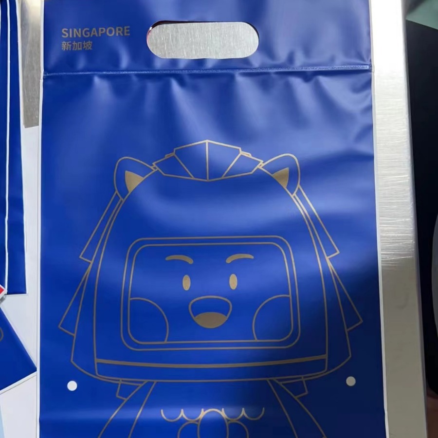 厂家生产CPE磨砂+PPE高透明龙年款毛绒公仔玩具包装磨砂手提袋