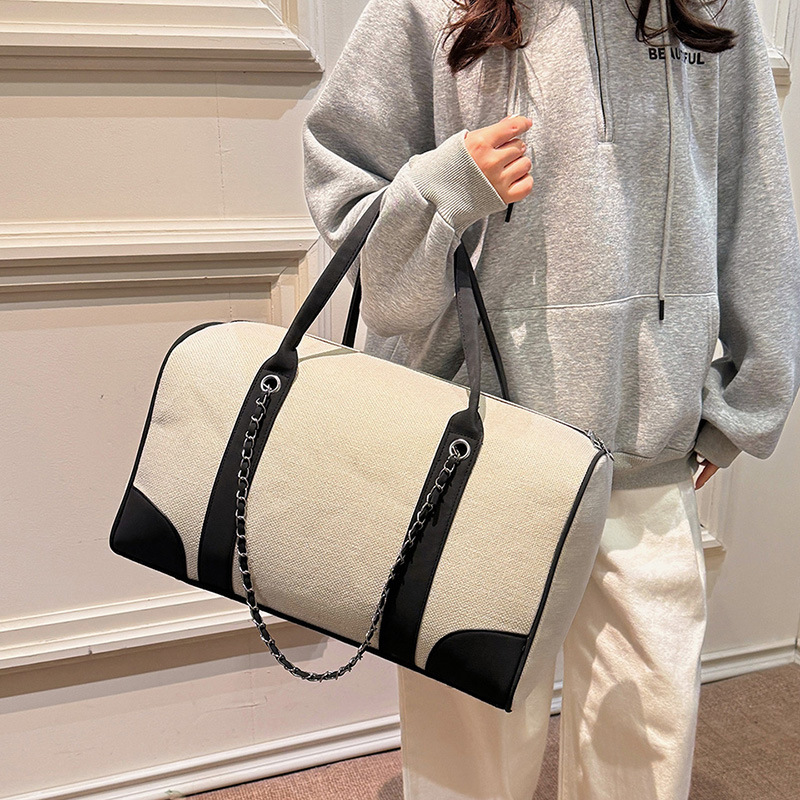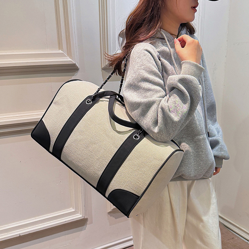 2024新款大容量撞色帆布手提包女包通勤旅行大包简约时尚单肩包潮