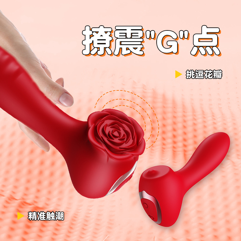 跨境新款玫瑰转珠震动棒旋转女用挑逗按摩器转珠自慰器电动按摩sm