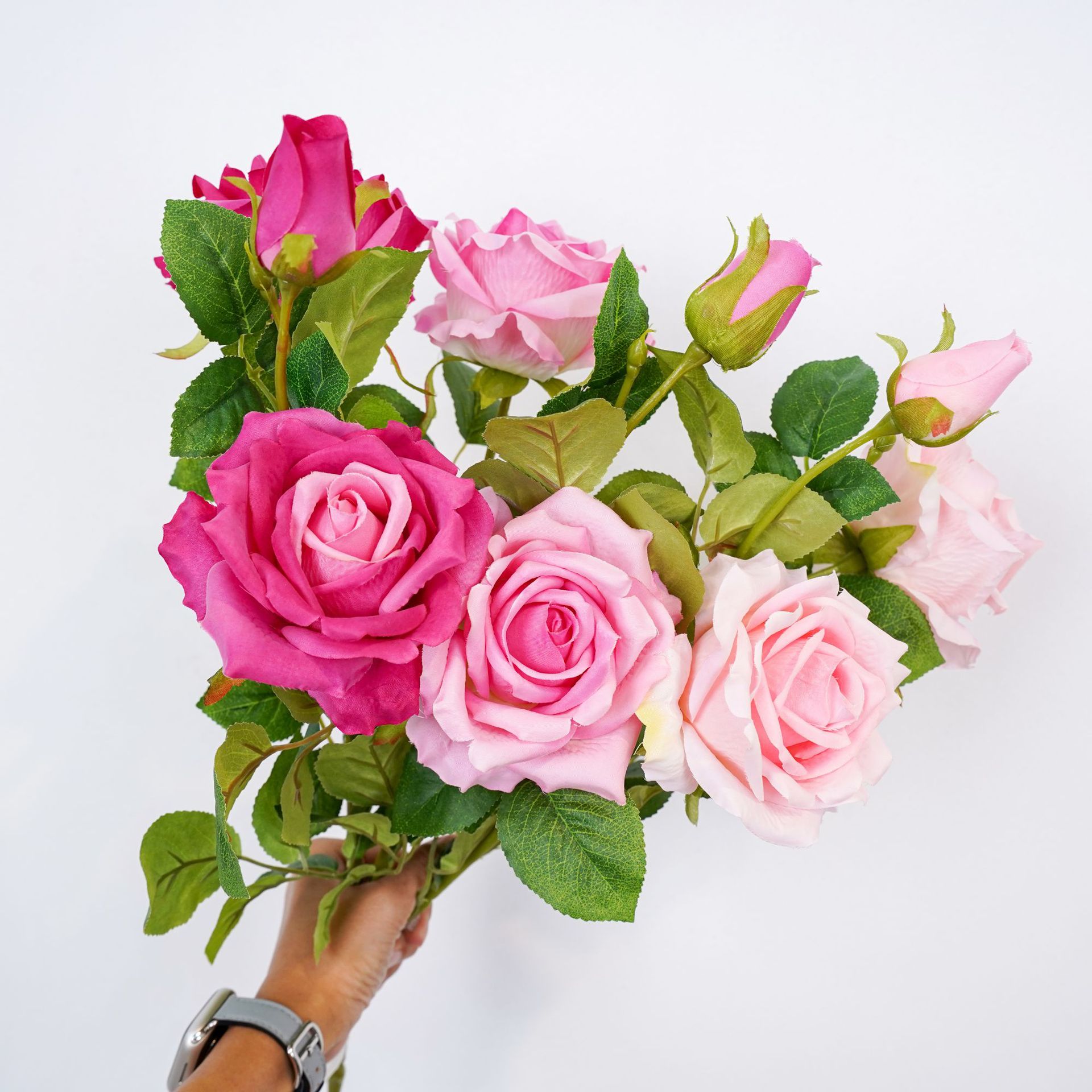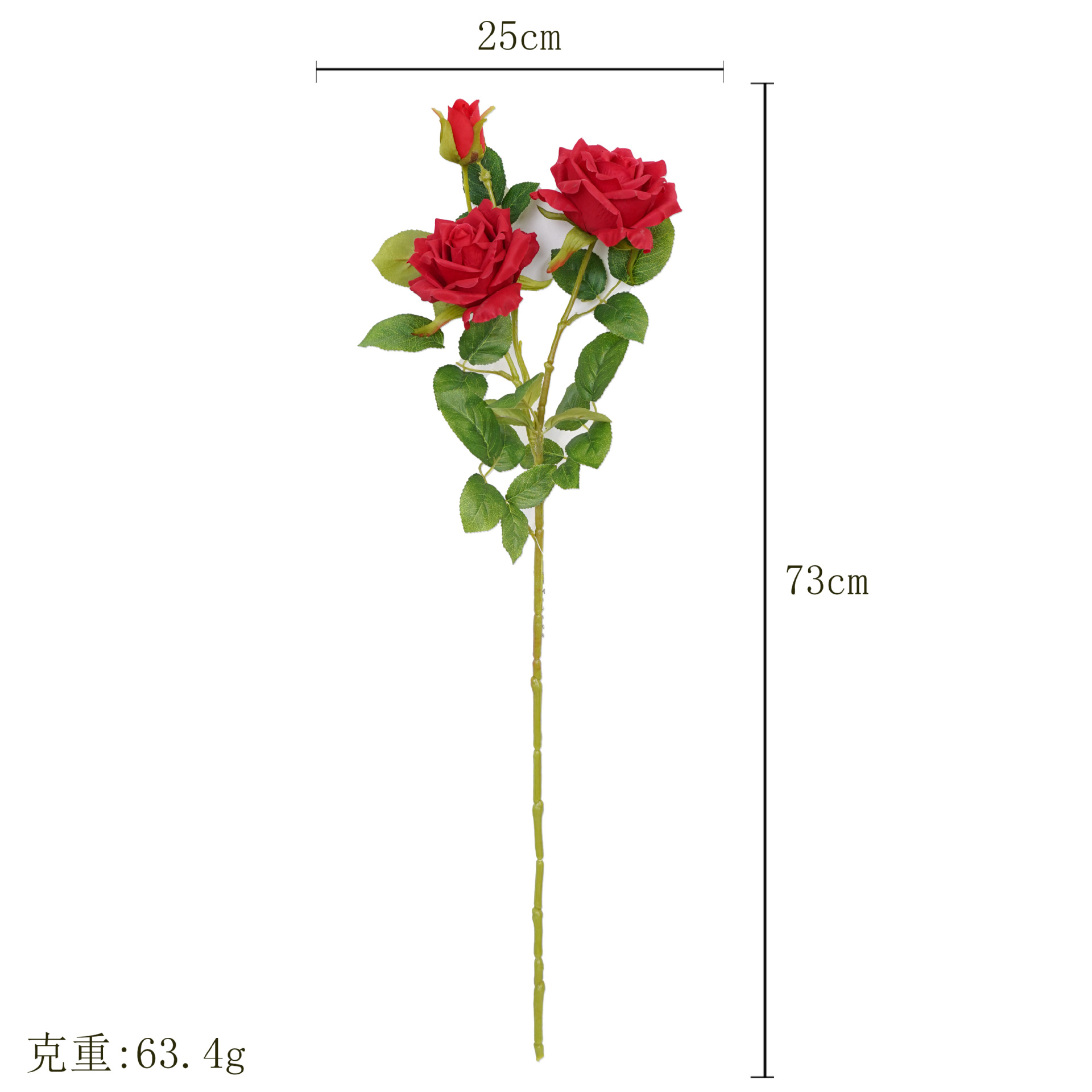 跨境批发三头角玫瑰仿真花婚庆用品路引花摄影造景装饰手工道具