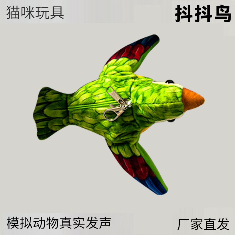 跨境新款抖抖麻雀拍打扇翅膀会叫仿真电动鸟猫咪自嗨仿真摆翼鸟