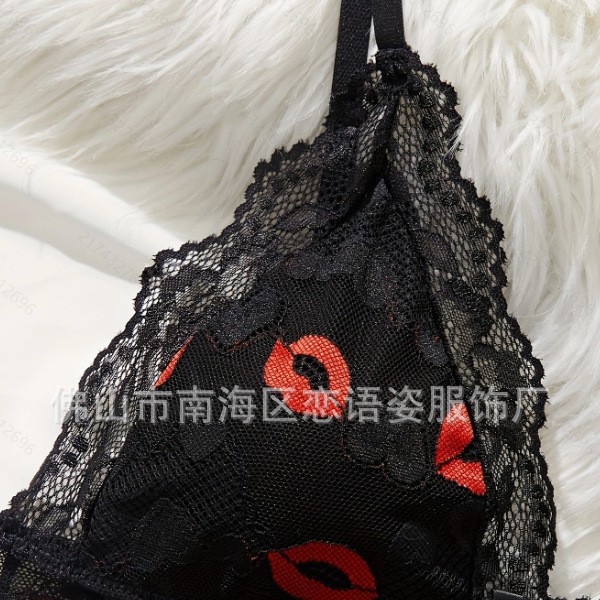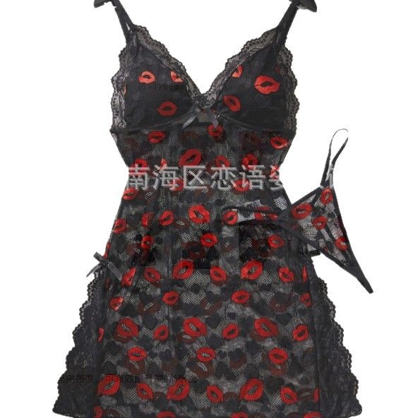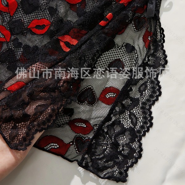 跨境爆款唇印提臀薄款刺绣睡裙性感聚拢魅力诱惑情趣睡衣吊带