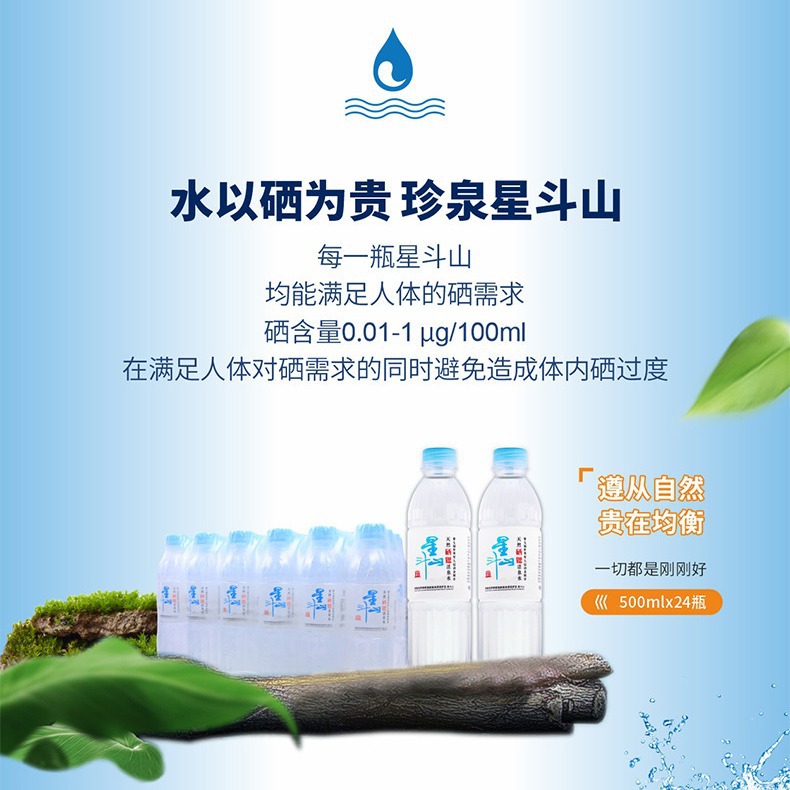 星斗山天然含硒活泉水湖北恩施弱碱硒锶矿泉水500ml/380mlx24瓶