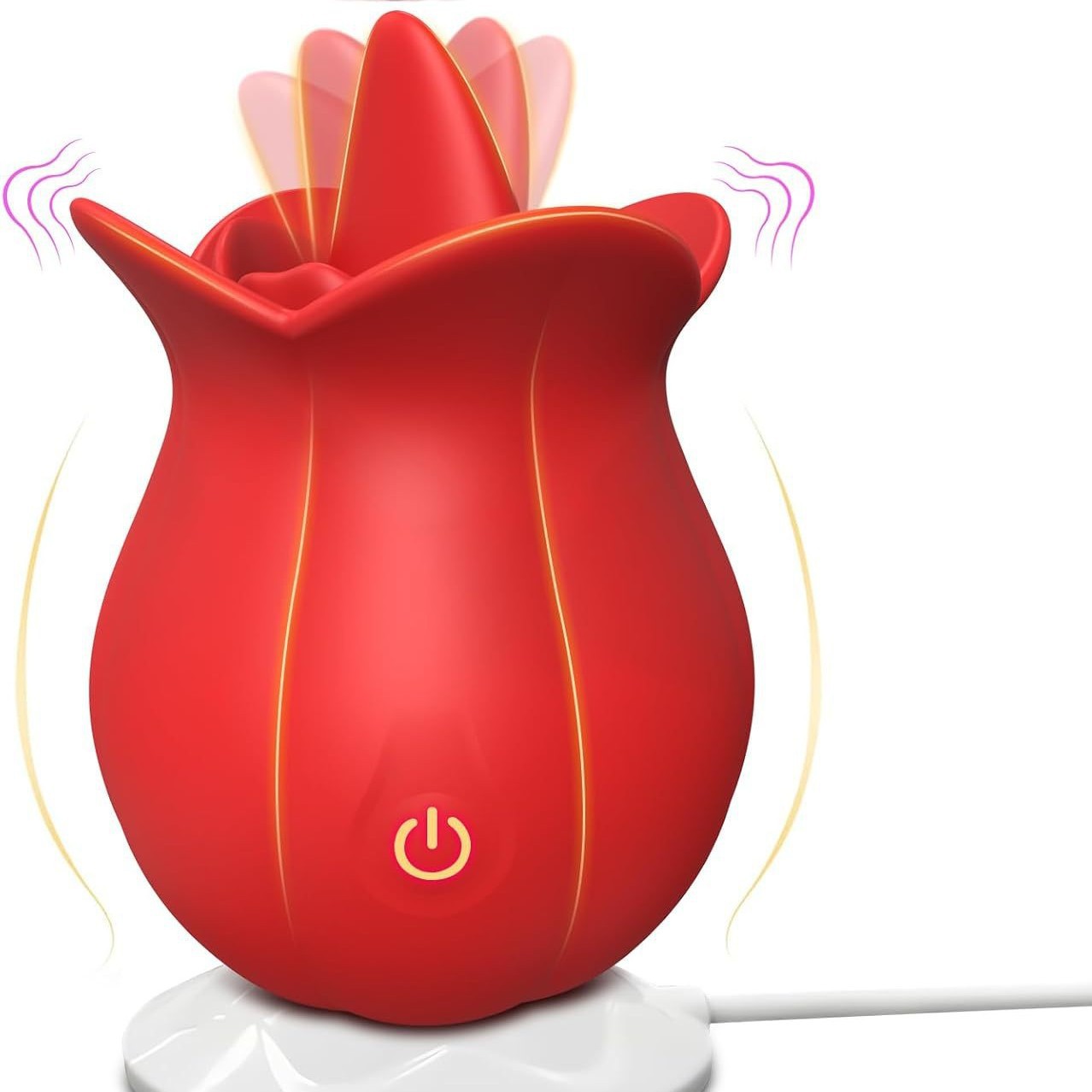 跨境新款女用自慰器玫瑰红唇舌舔自慰乳房阴蒂震动棒批发厂家