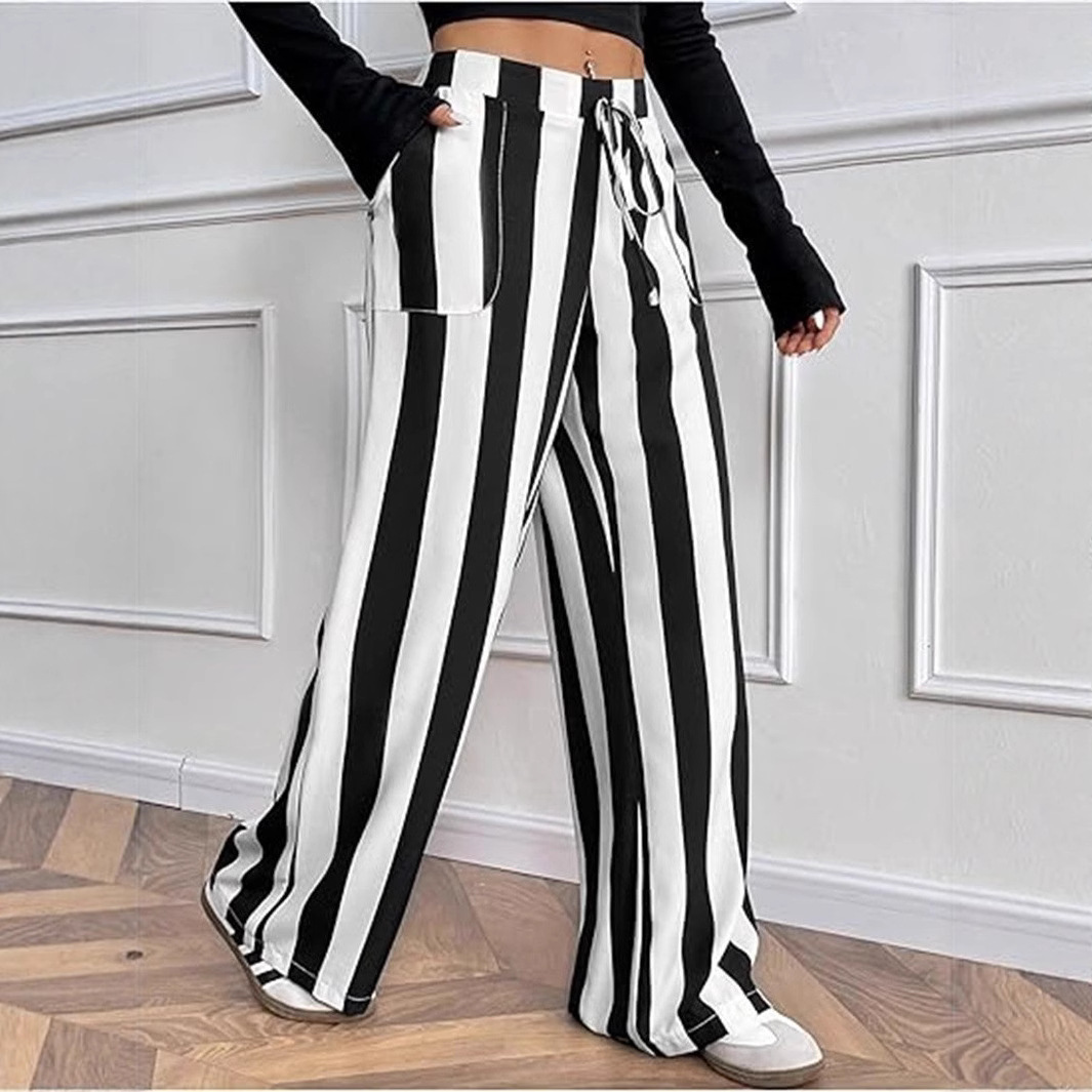 新款欧美阔腿休闲裤子2025夏季设计感时尚气质显瘦条纹裤
