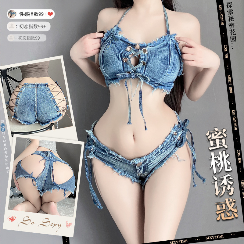 情趣内衣低腰开档短裤性感破洞牛仔短裤夜店火辣诱惑多款组合爆款