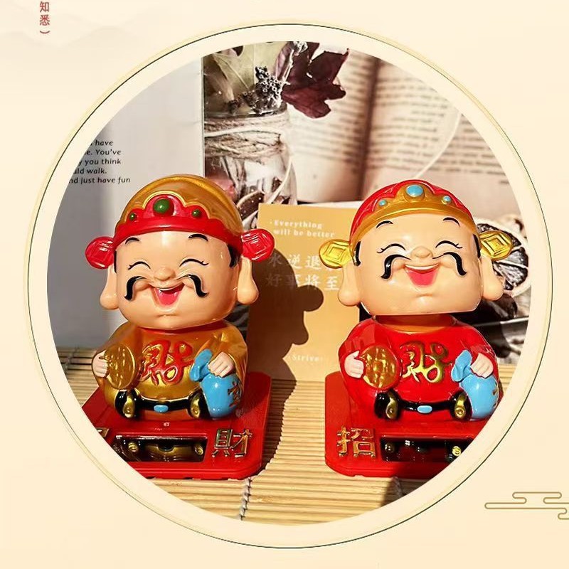 光能感应自动点头财神爷新春喜庆摆件收银台盆栽装饰中控台车载