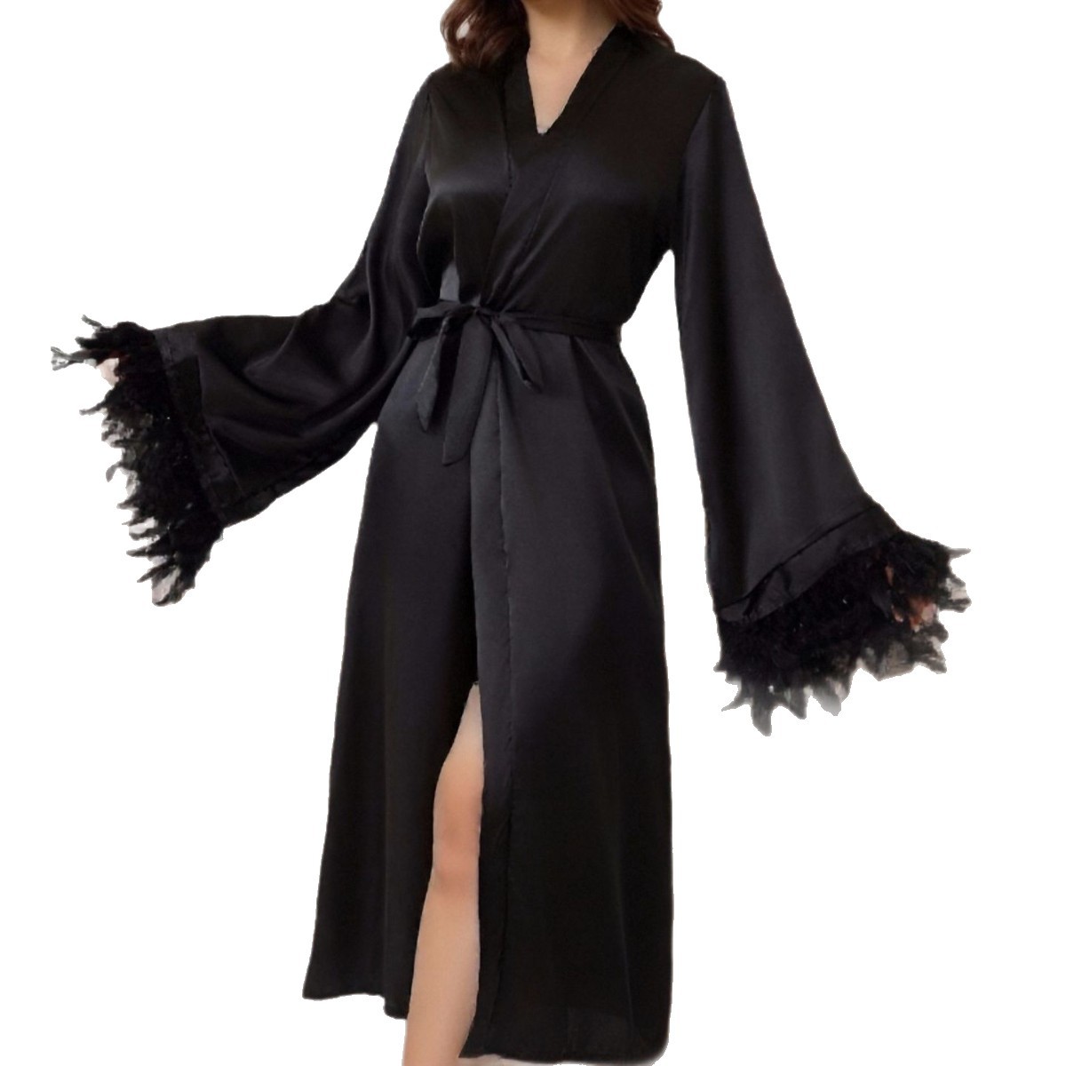 欧美性感家居服女夏新款蕾丝花边开衫睡袍情趣长款内衣睡衣浴袍