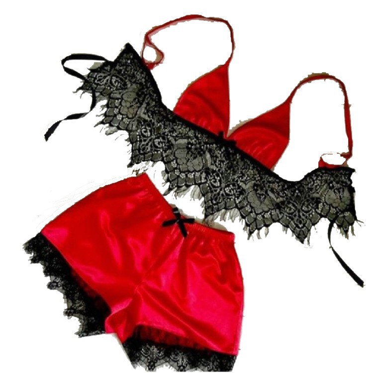 2025新款情趣内衣女夏蕾丝性感花边家居服韩系ins仿真丝睡衣套装