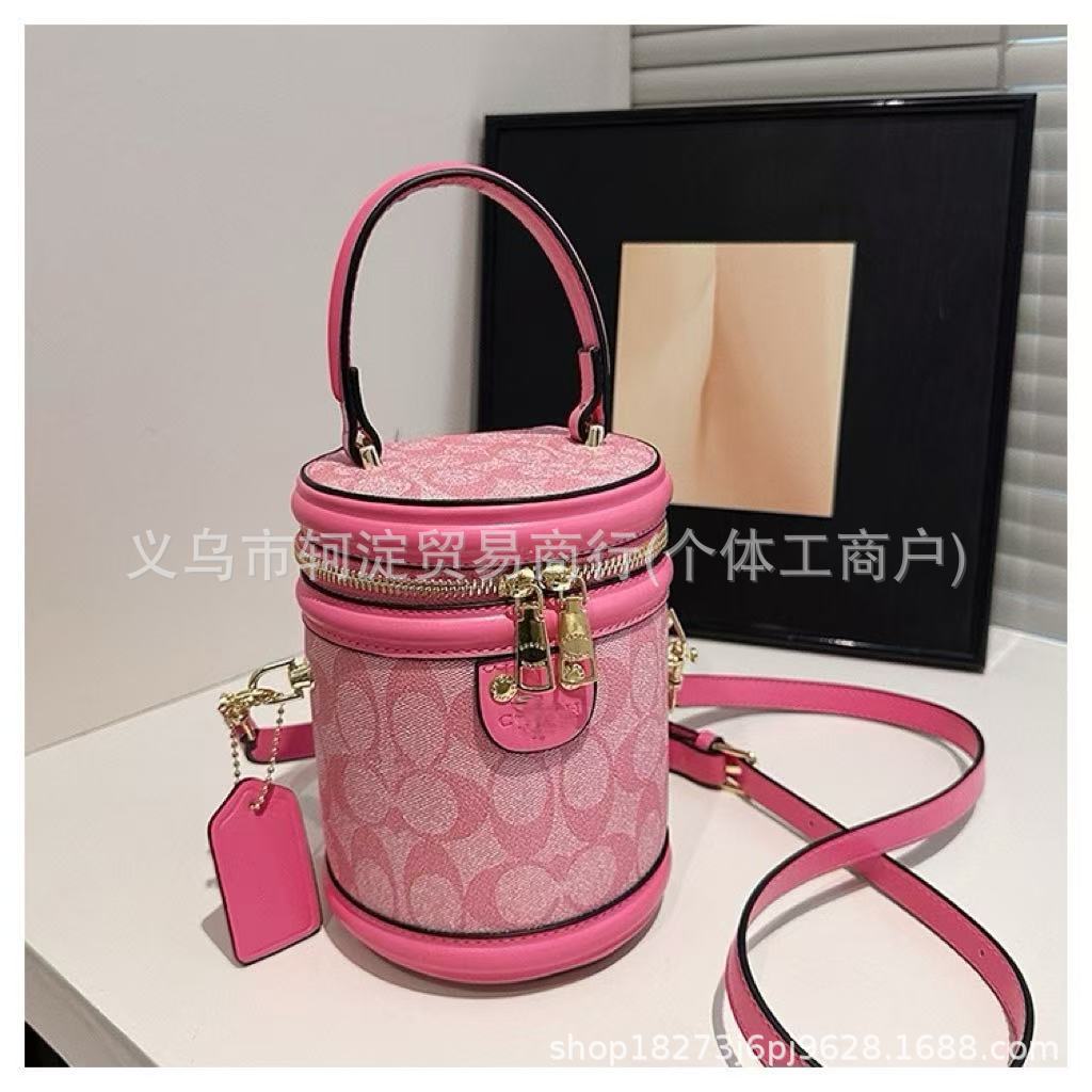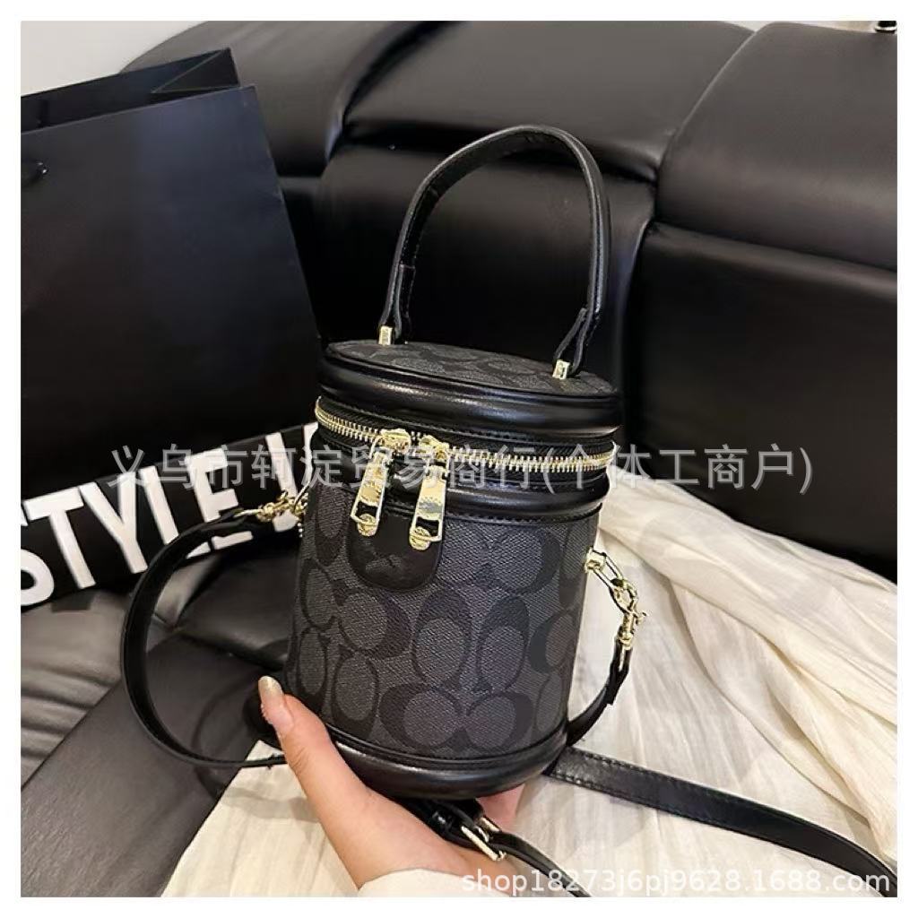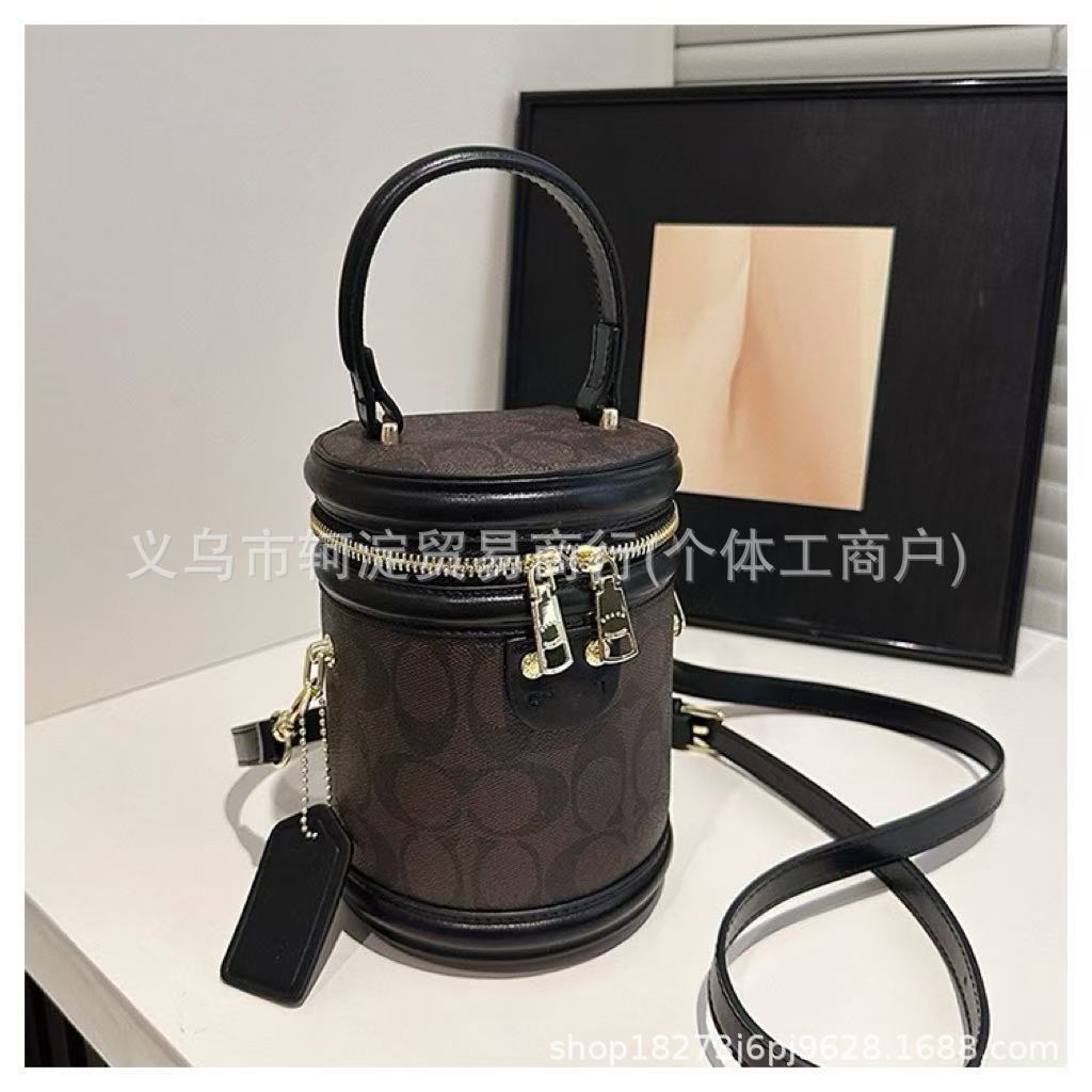 圆筒包包女高级感2025新款单肩斜挎手提包复古时尚百搭印花水桶包