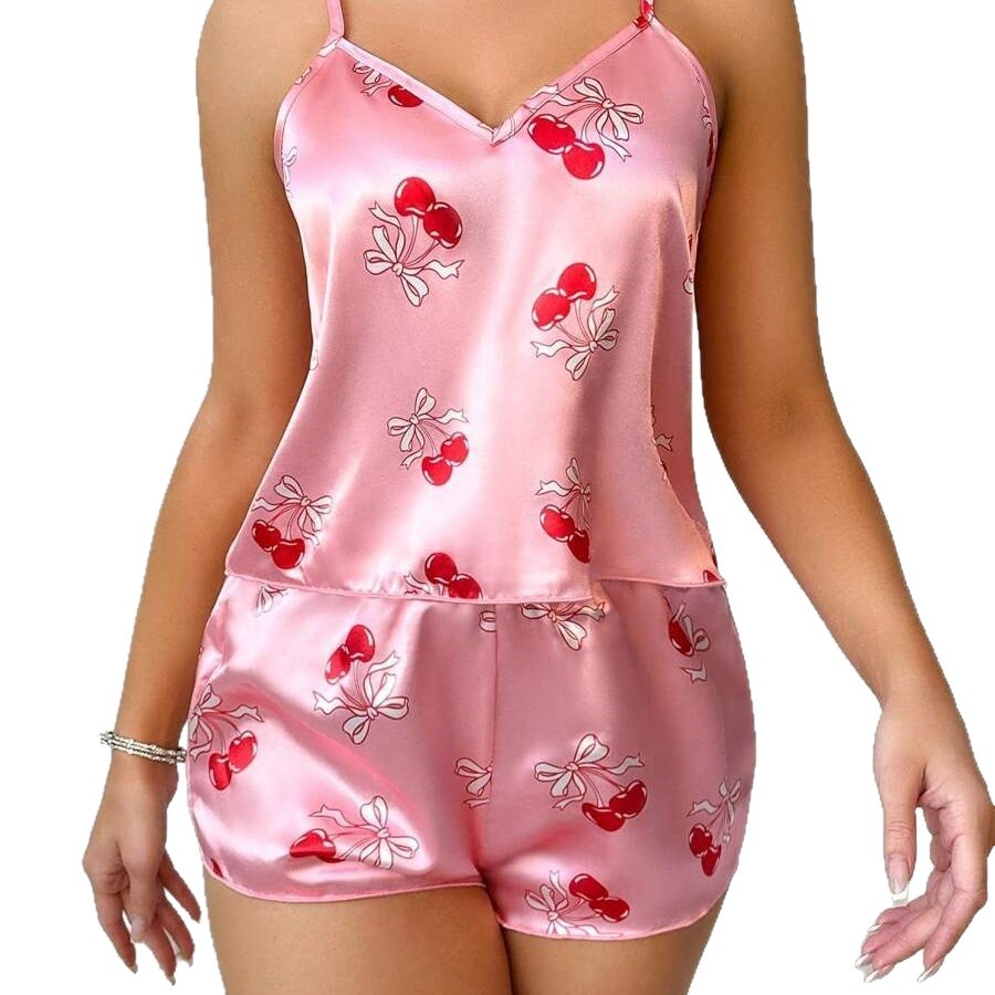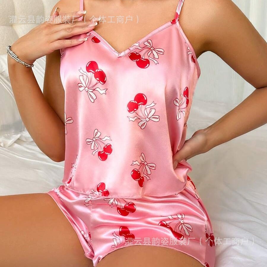 2025薄款樱桃印花情趣内衣女夏吊带睡衣性感家居服跨境lingerie