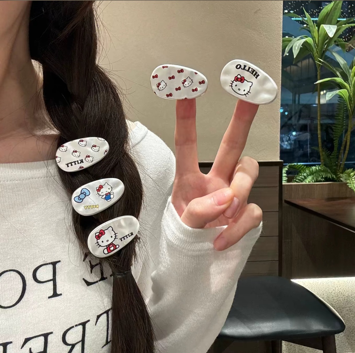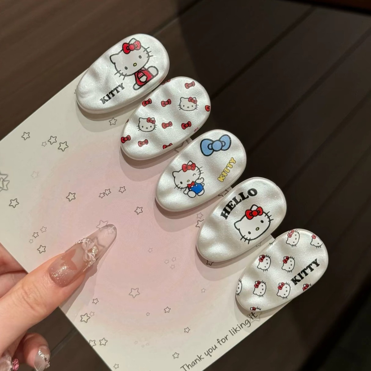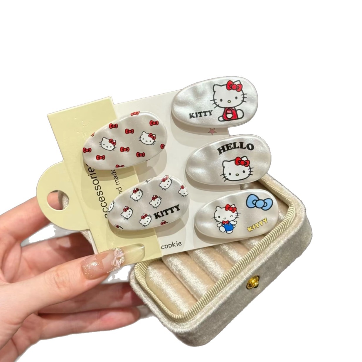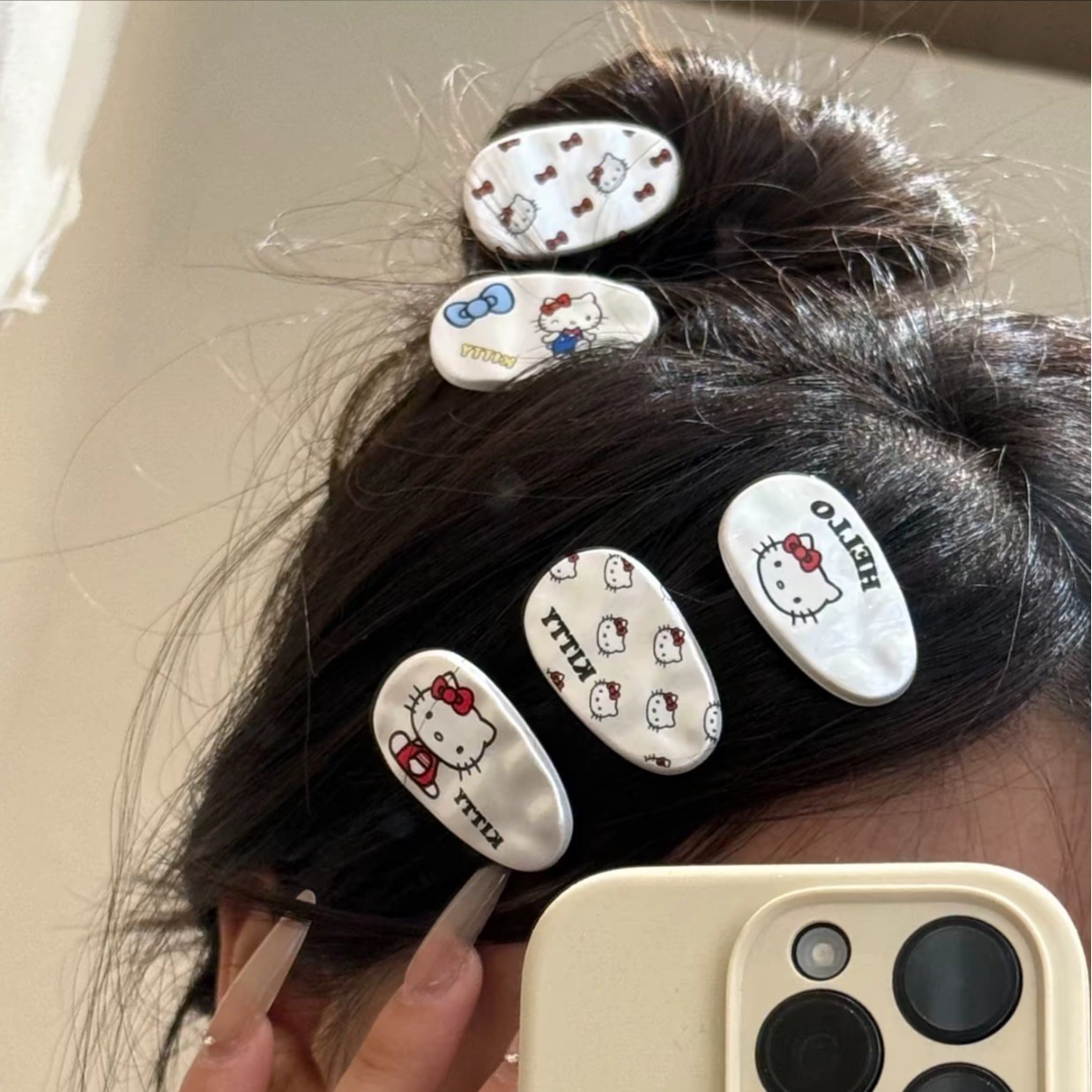 韩系kt猫水波纹发夹甜美可爱凯蒂猫侧边夹碎发夹椭圆夹发饰日韩