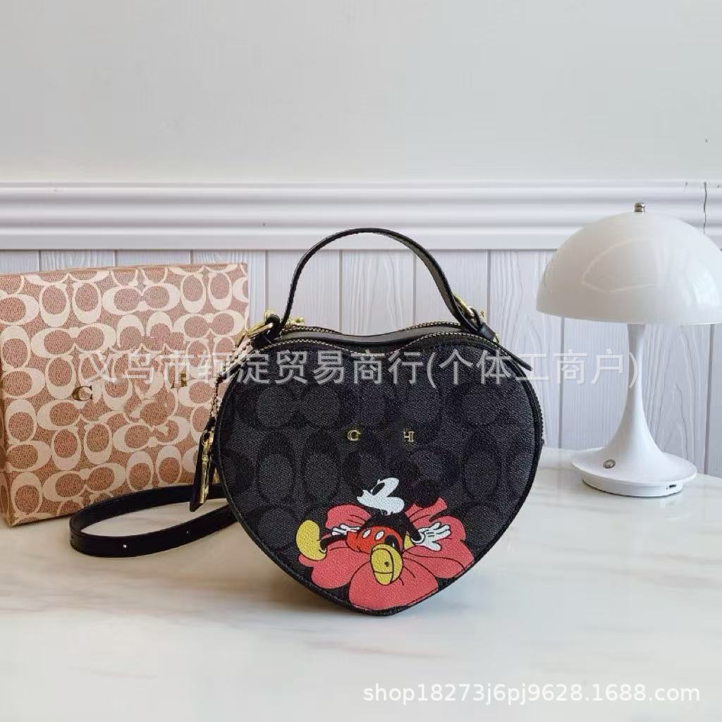 欧美跨境时尚爱心包2025C家经典卡通涂鸦斜挎包休闲百搭单肩包
