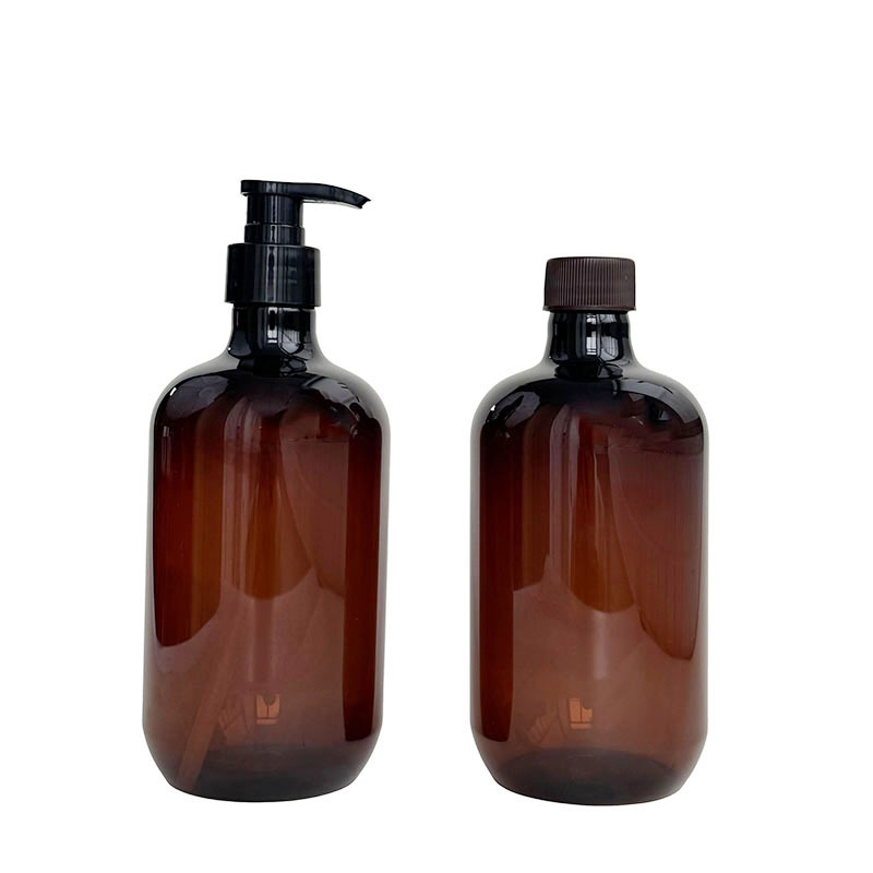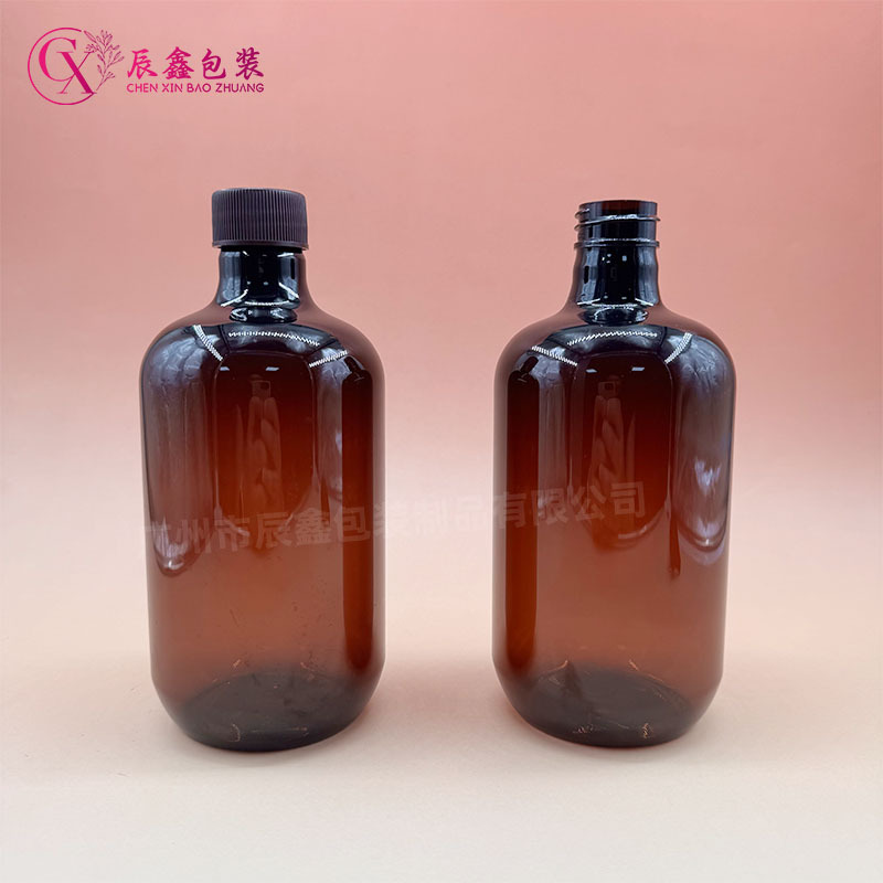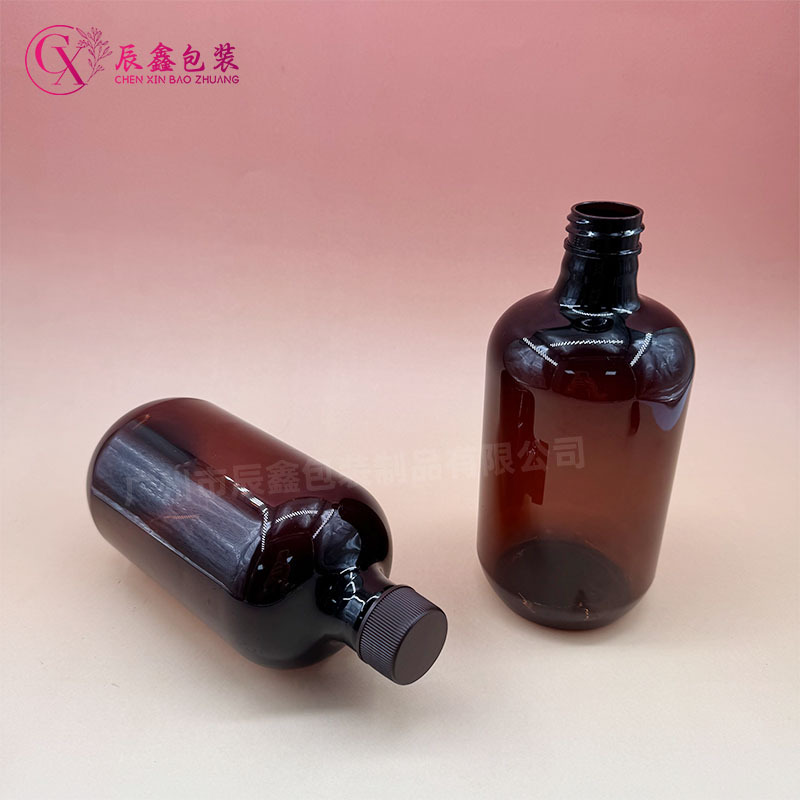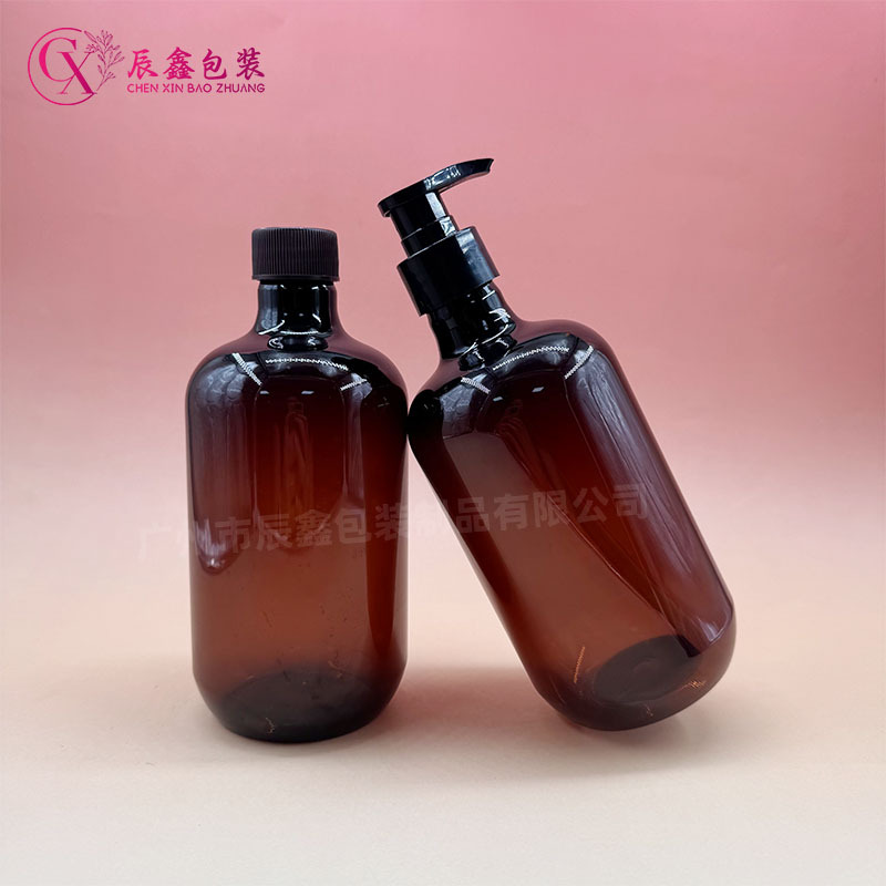 工厂直销600ml茶色超大大容量洗发水沐浴露PET三件套化妆品分装瓶