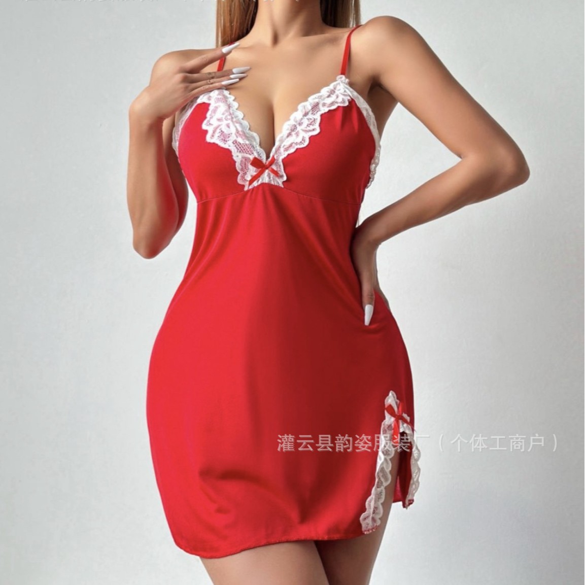 亚马逊爆款性感吊带睡裙深v大码情趣内衣包臀睡衣女夏短款家居服