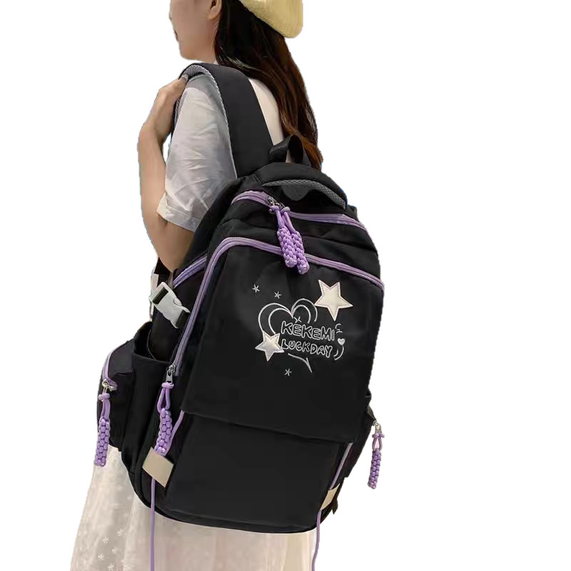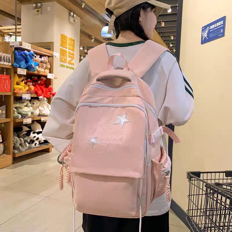 2025新款大容量纯色双肩包简约小清新中学生高中生书包减负背包
