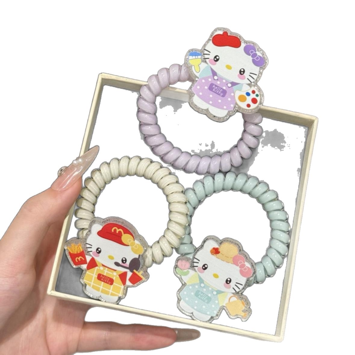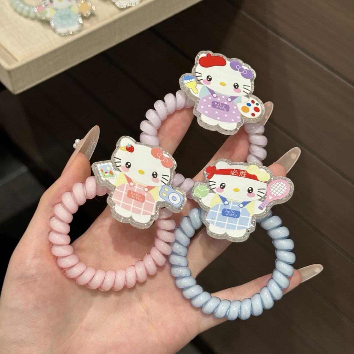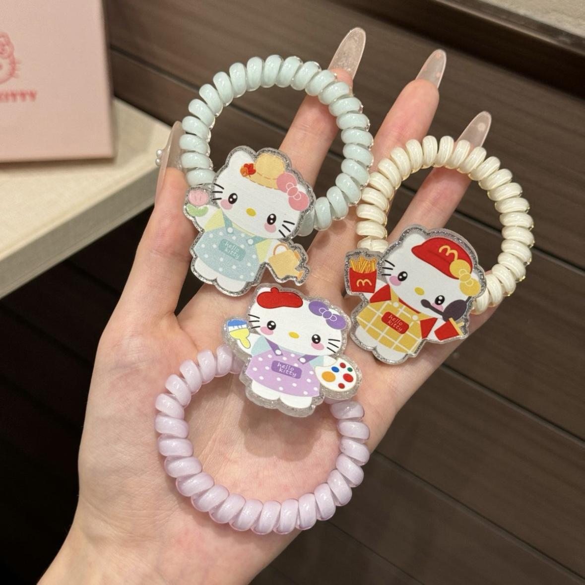 新款围裙小猫kt发圈发绳可爱卡通猫咪皮筋电话线学生丸子头绳礼物