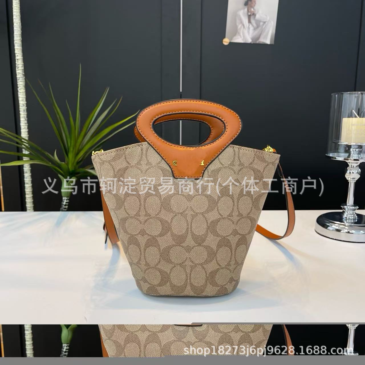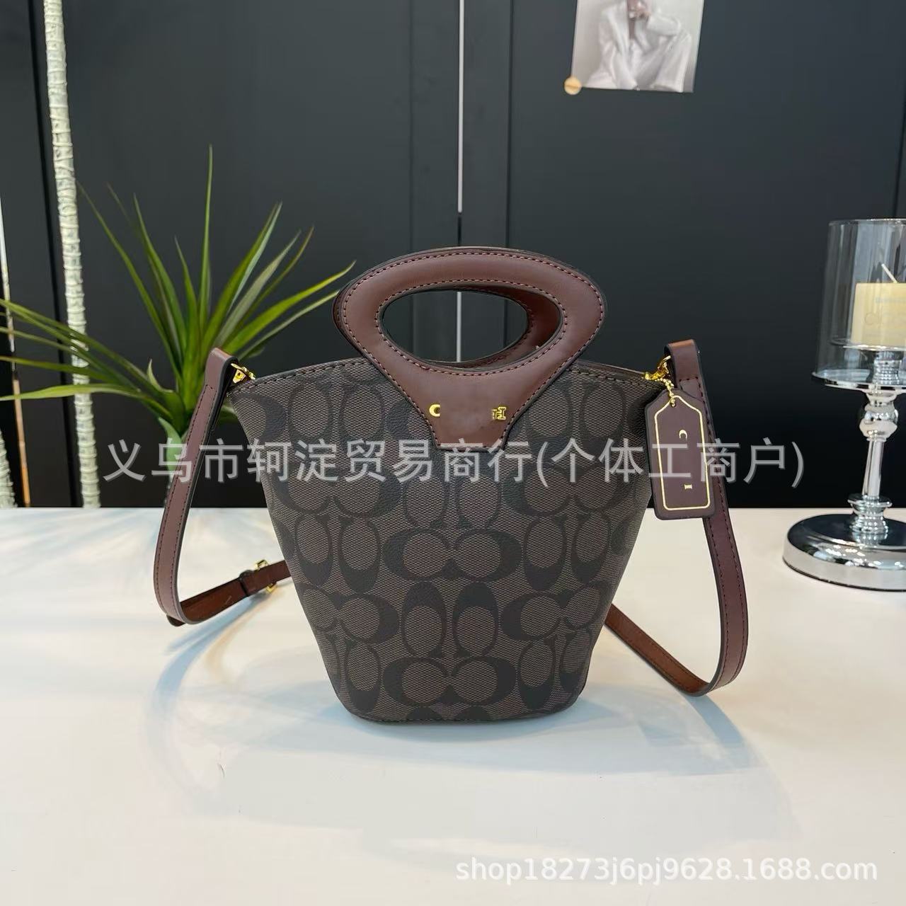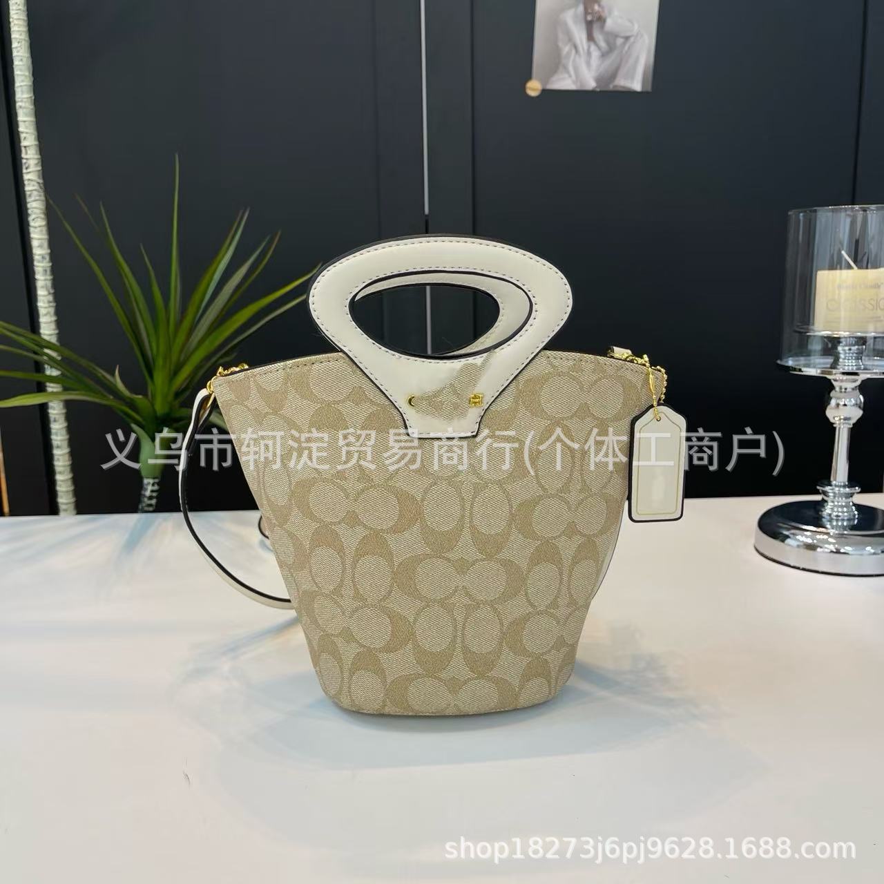 蔻家女士水桶包2025C家复古老花单肩菜篮子包时尚潮流斜跨手提包