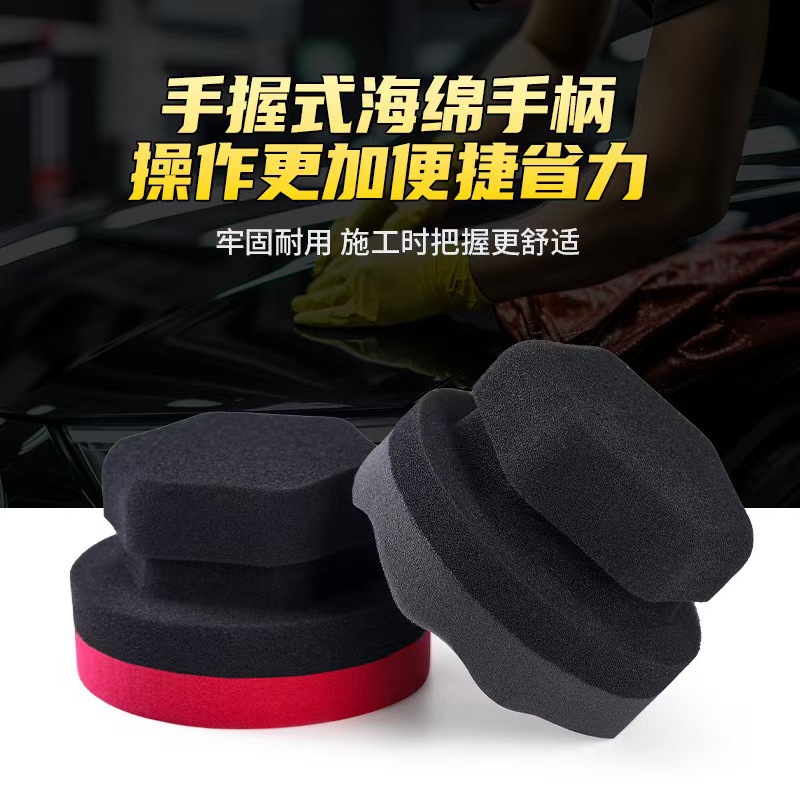 跨境汽车美容抛光盘手持打蜡棉六角手柄多功能海绵轮打蜡海绵盘