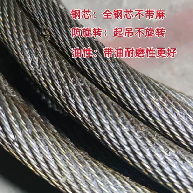 光面涂油钢丝绳钢芯防旋转提升机车载吊机电动葫芦卷扬机软钢丝绳