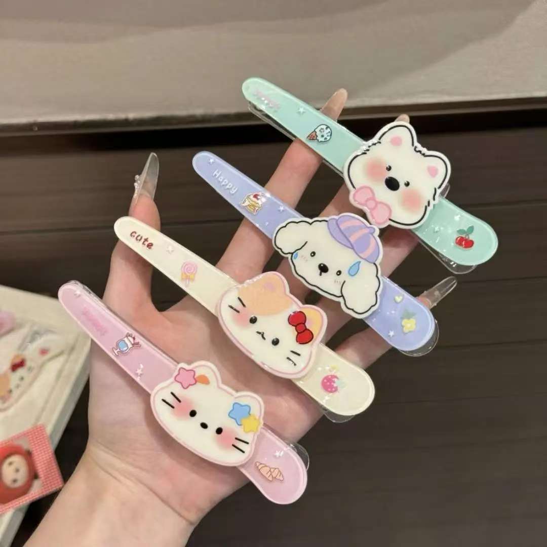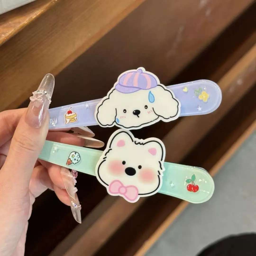可爱小狗小猫纽扣款一字夹卡通小狗少女心刘海夹甜美ins风发夹