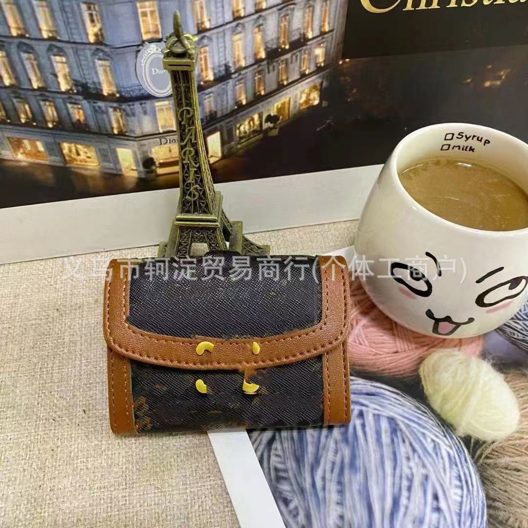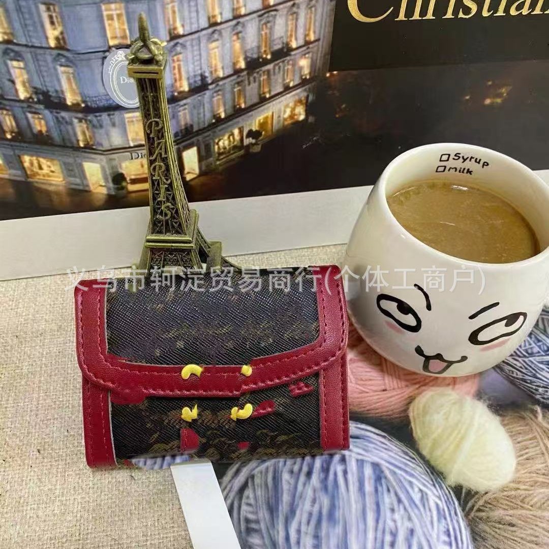 2025新款女士小卡包包新款复古老花钱包撞色设计实用又好看