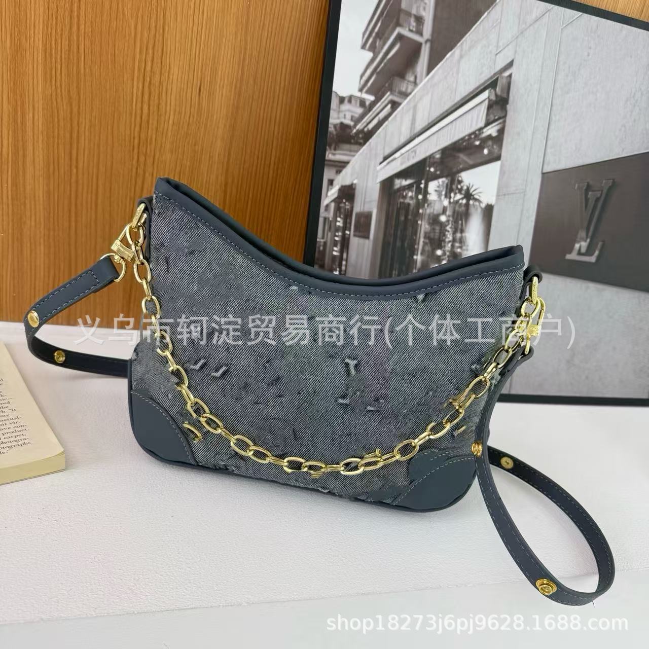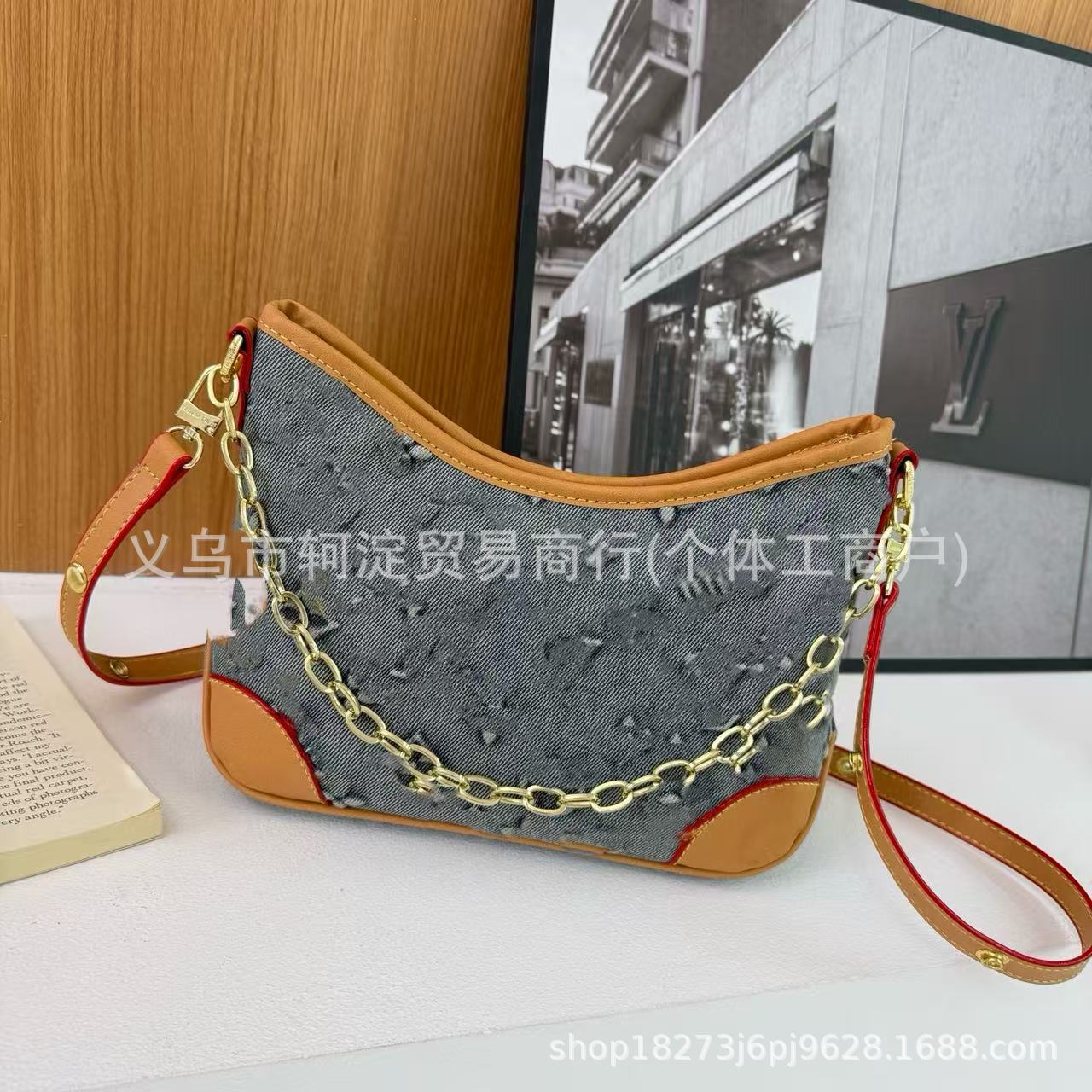 跨境批发2025新款潮牌老花女包法棍包牛角包复古腋下包发财桶女包
