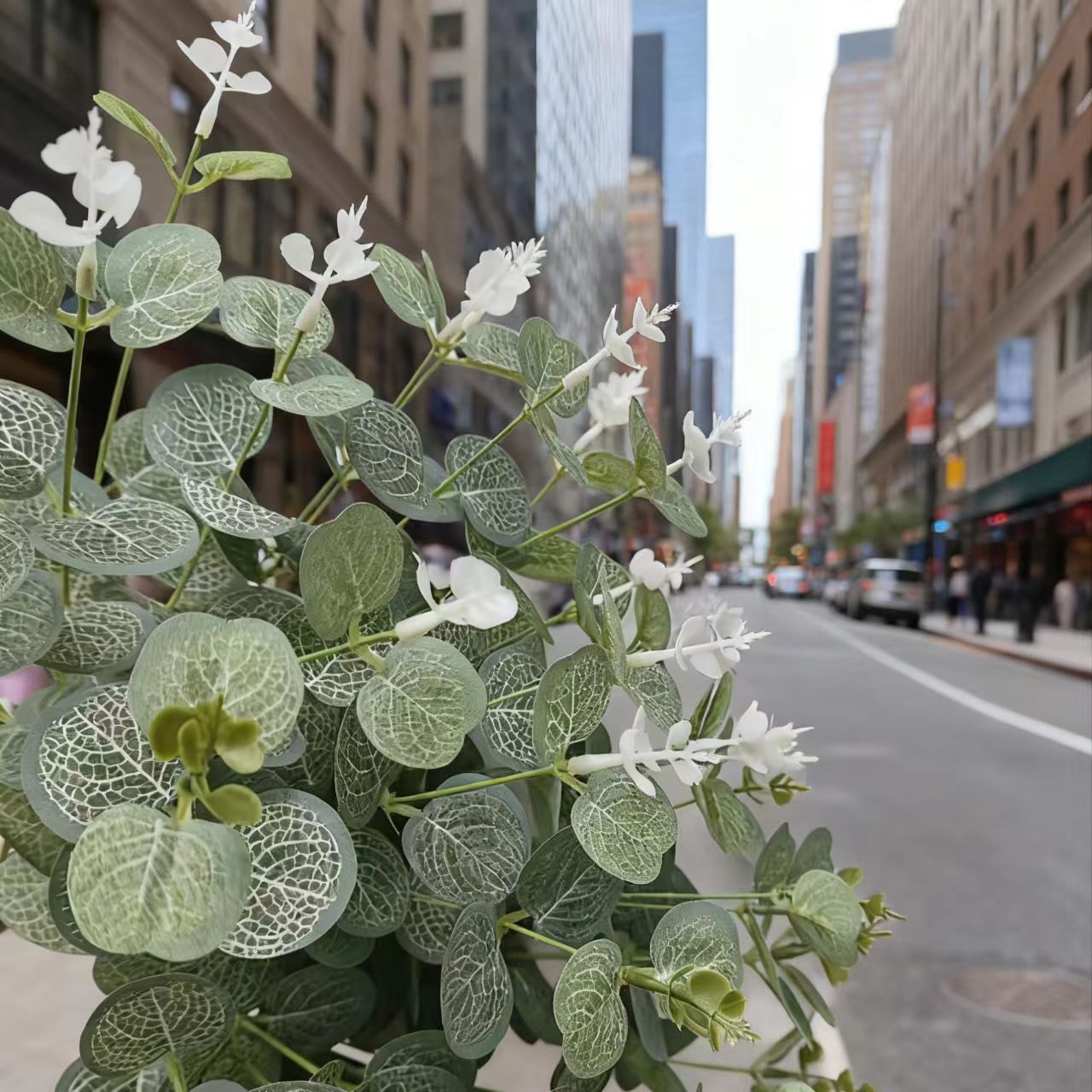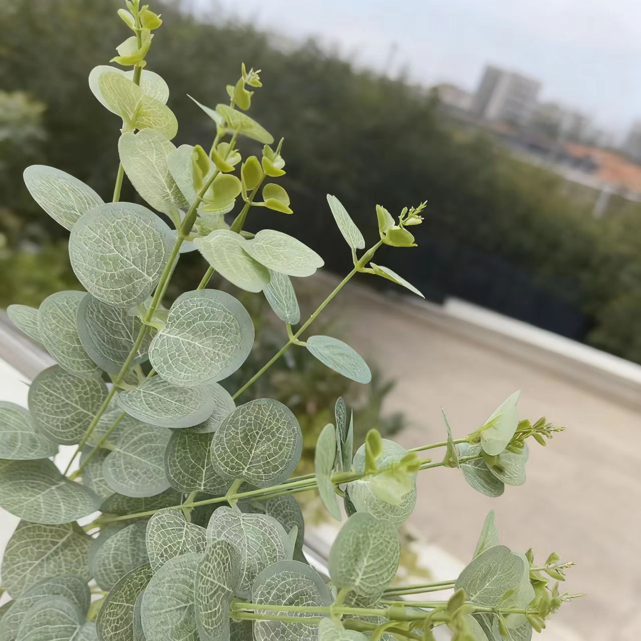 仿真单支金钱叶尤加利 ins风立体尤加利仿真花绿植插花装饰品摆件